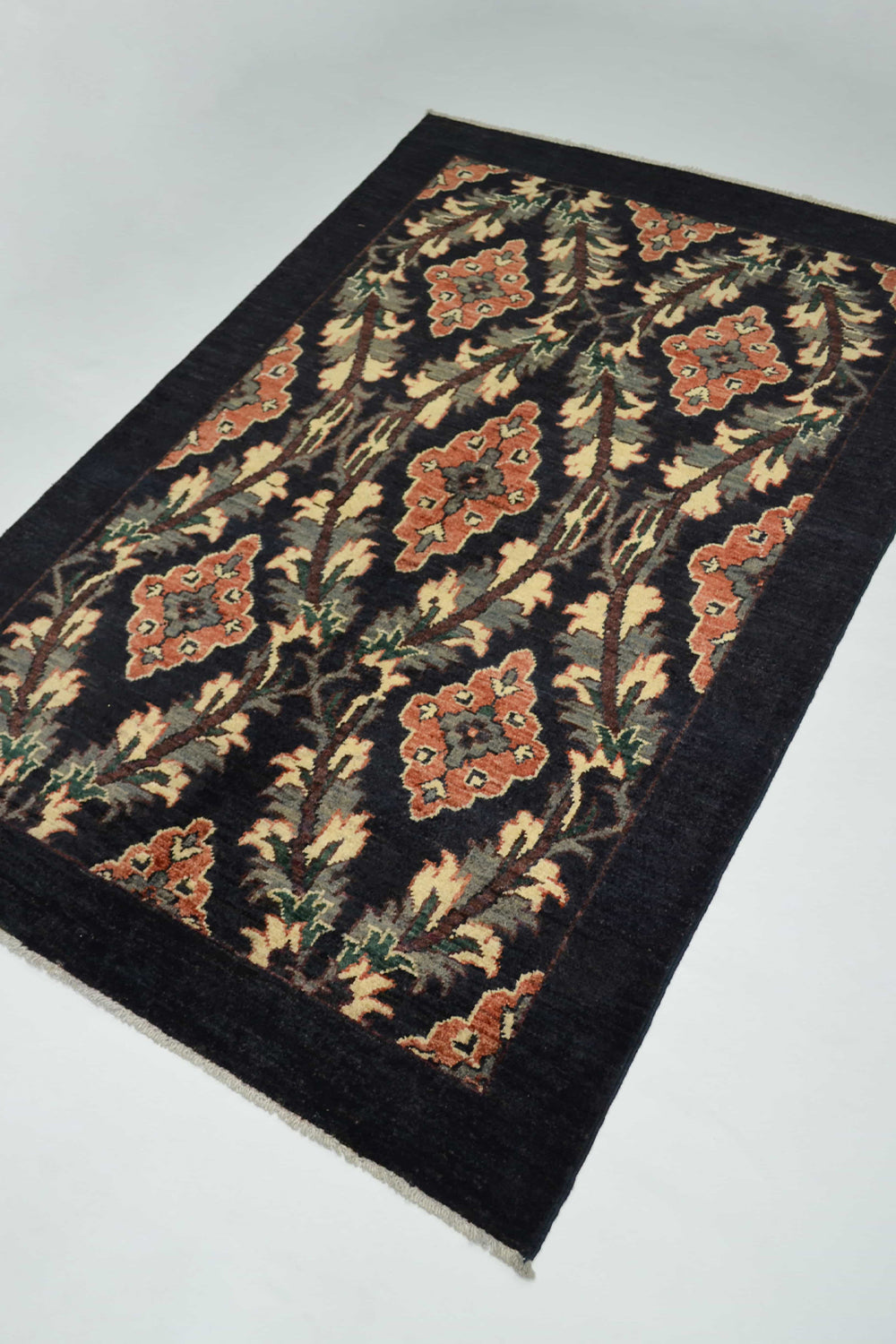Siyah zemin üzerinde kırmızı motiflerle öne çıkan bu klasik tasarım, bulunduğu mekânda güçlü ve sofistike bir duruş sergiler. 99x153 cm ölçüsüyle koridor, oturma odası veya özel köşeler için idealdir.