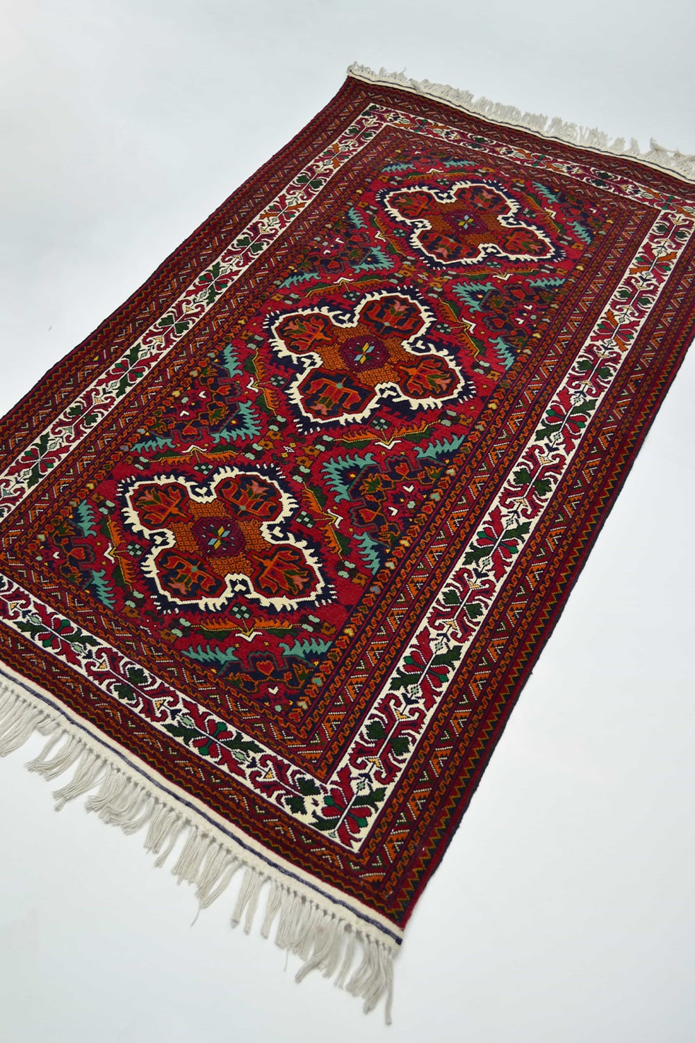 Bordo rengi, geleneksel Bilicik motifleriyle birleşerek bulunduğu ortama sıcak ve otantik bir atmosfer kazandırır. 93x144 cm ölçüsü, giriş, oturma alanı veya çalışma köşelerinde şık bir vurgu oluşturur.