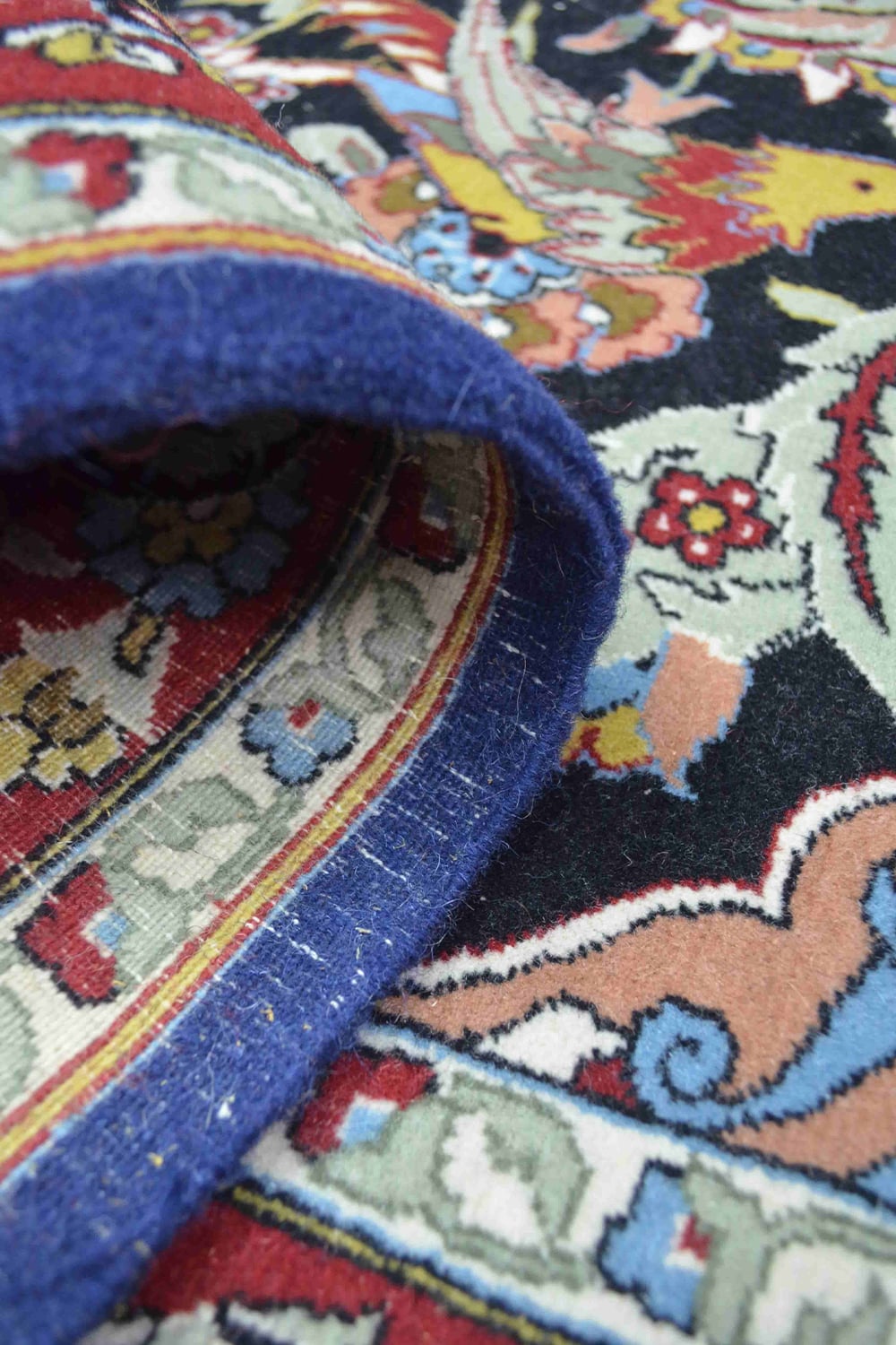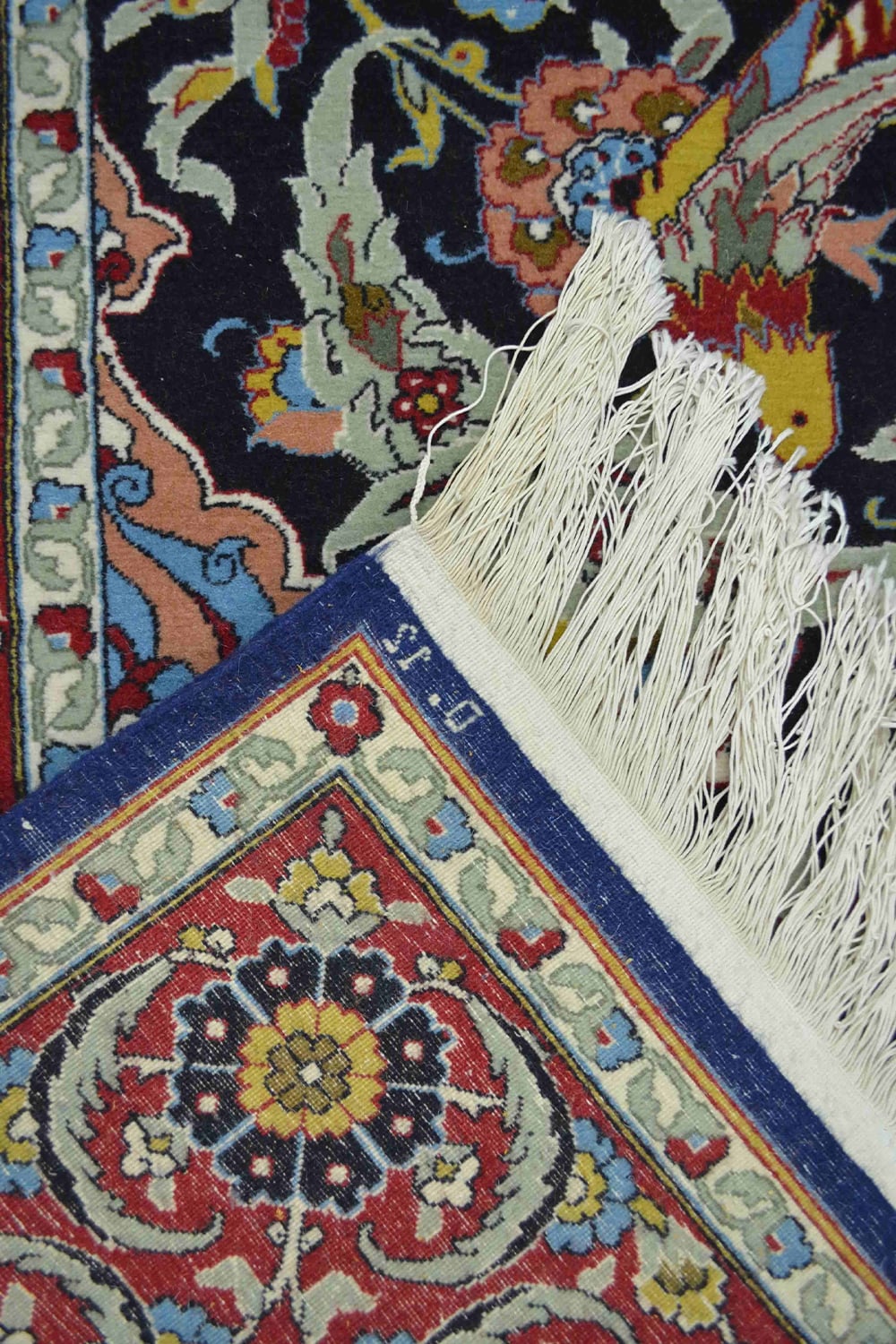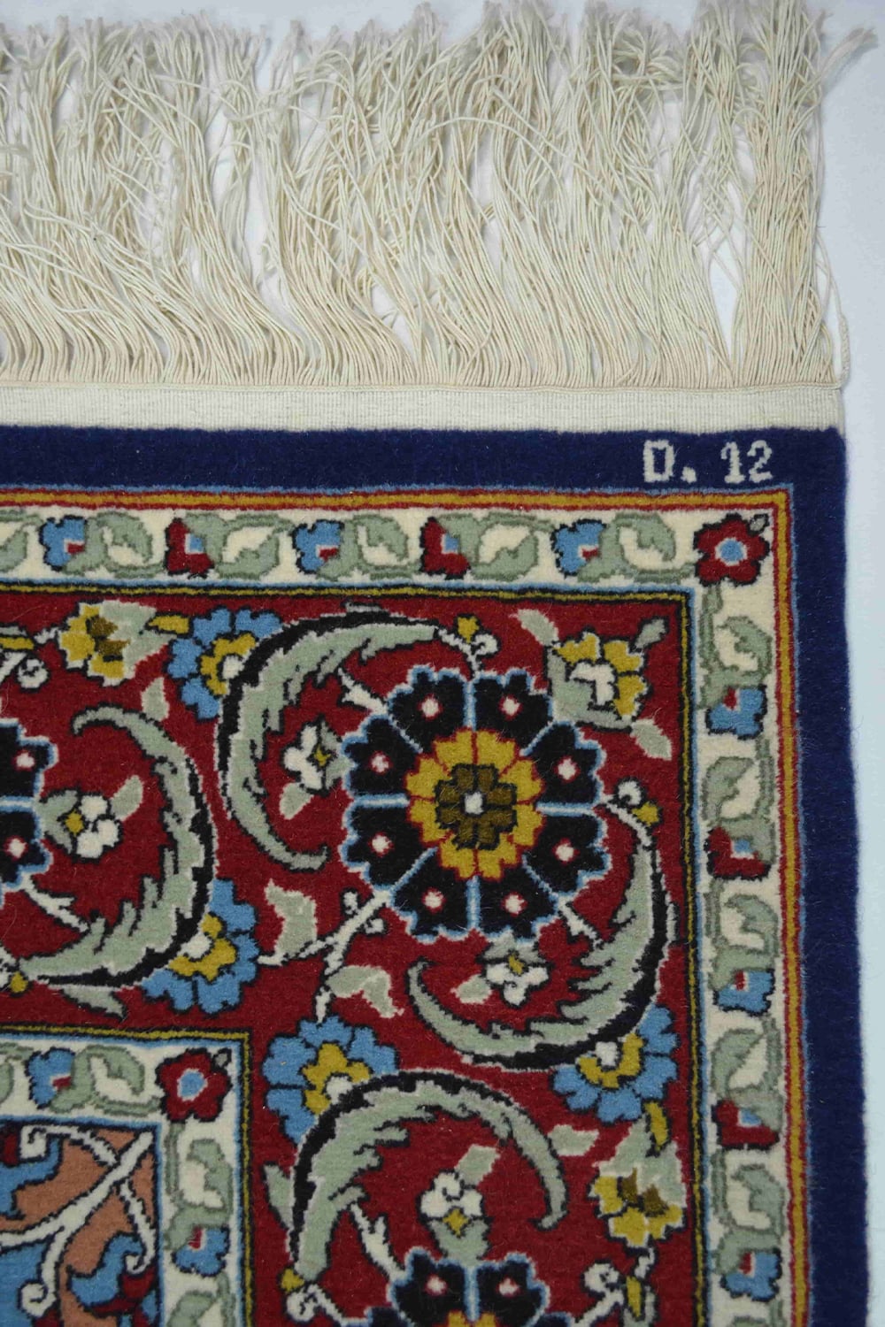 Bu özgün Hereke halısı, 60x60 düğüm sıklığı ve metrekarede yaklaşık 360.000 ilmek yoğunluğuyla, el dokuma halıcılığın zirvesini temsil eder. 120x196 cm ölçülerindeki parça, pamuk saçak üzerine yün ipliklerle büyük bir özenle dokunmuştur.