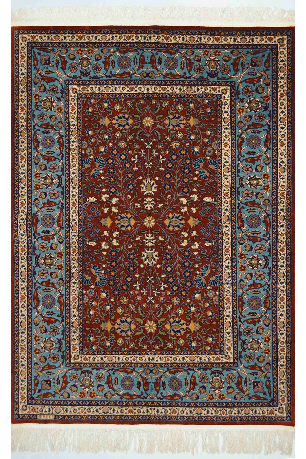 Yedi Dağın Çiçeği Desenli Bordo Renk Yünden El Dokuma Hereke Halısı 116x170 Cm