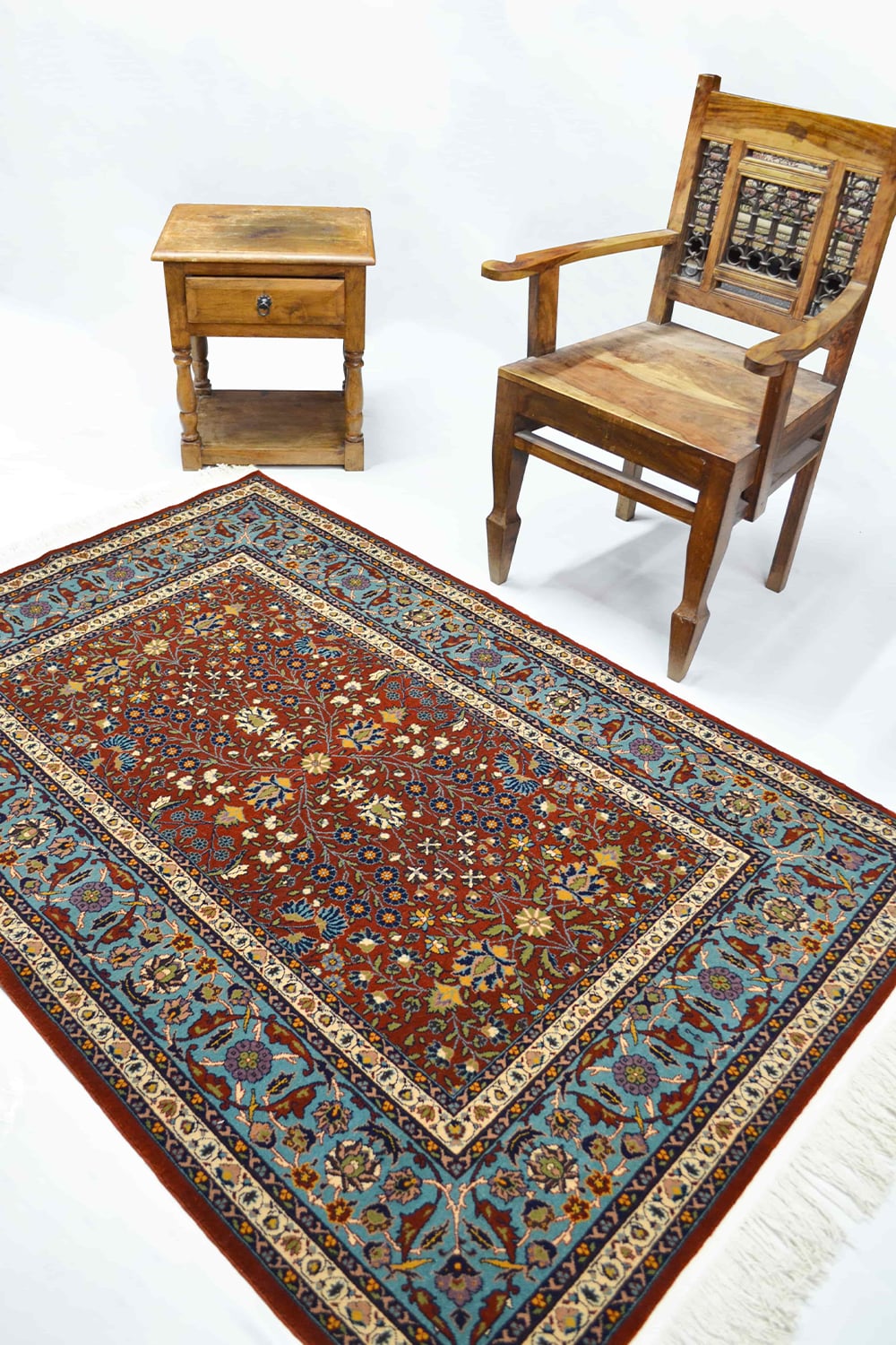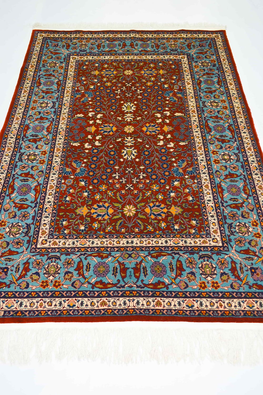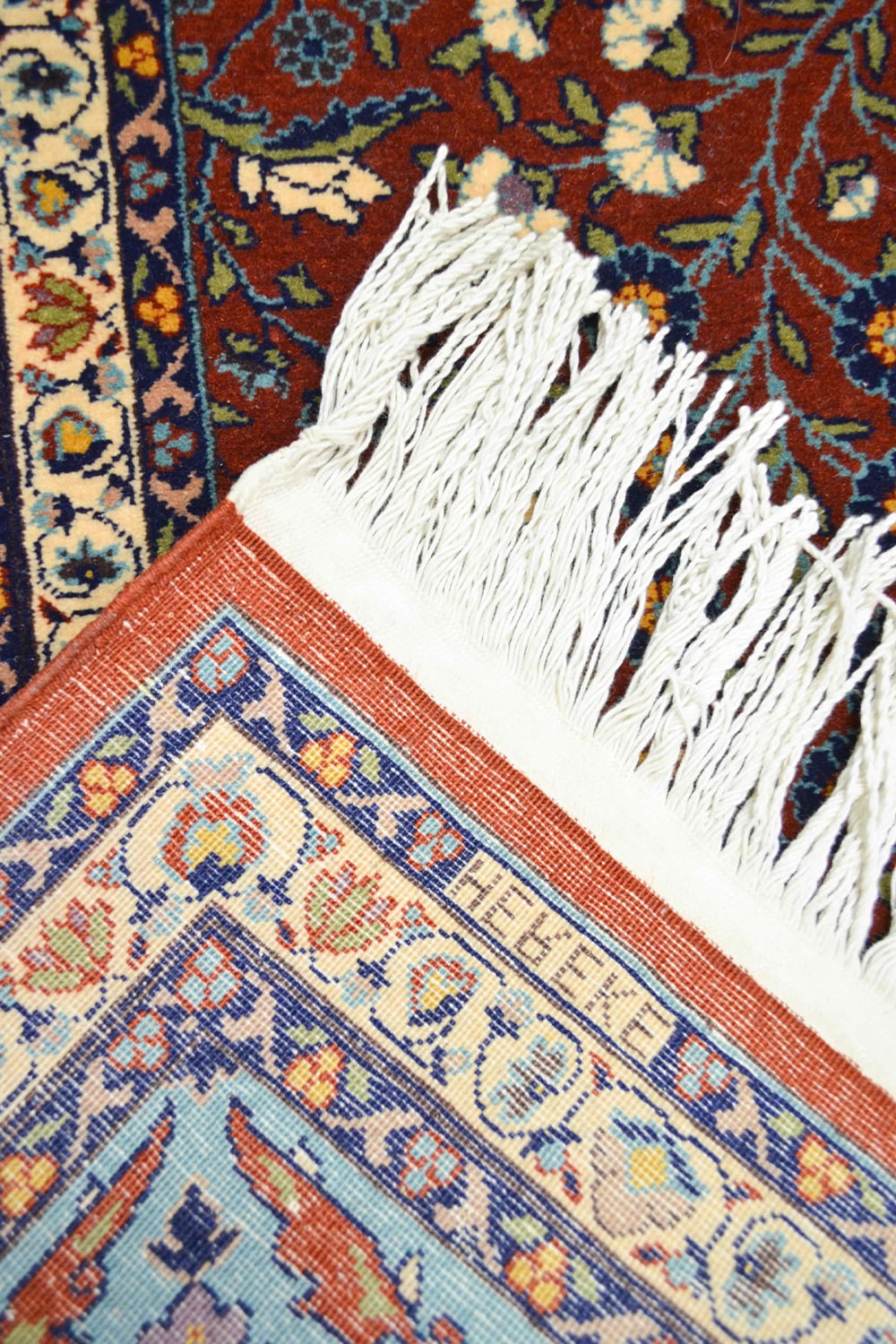 Bordo rengi zemin üzerine işlenen motifler, doğadan esinlenen estetik bir görünüm sunarken aynı zamanda klasik Türk halı sanatının inceliklerini yansıtır. 116x170 cm ölçüsüyle hem fonksiyonel hem de dekoratif bir parça olarak yaşam alanlarını zenginleştirir.
