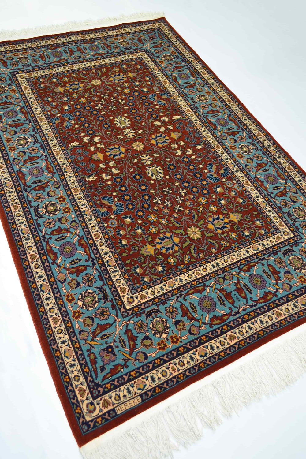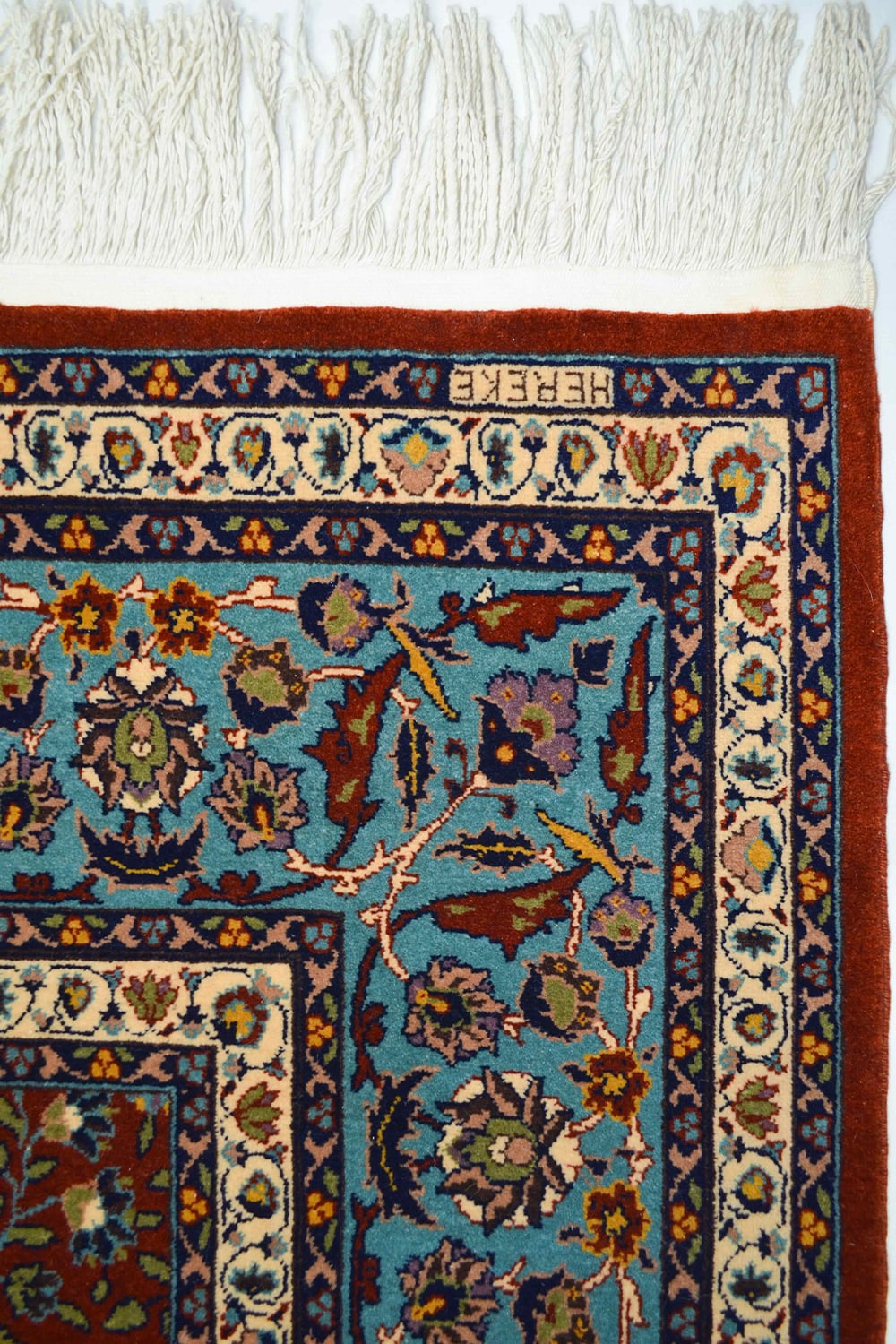 60×60 düğüm kalitesinde, metrekaresinde yaklaşık 360.000 ilmek sıklığına sahip bu orijinal Hereke halısı, pamuk saçak üzerine yün iplikle özenle el dokuma olarak üretilmiştir. Hereke halıcılığının seçkin örneklerinden biri olan bu model, “Yedidağın Çiçeği” olarak bilinen zarif desenle süslenmiştir.