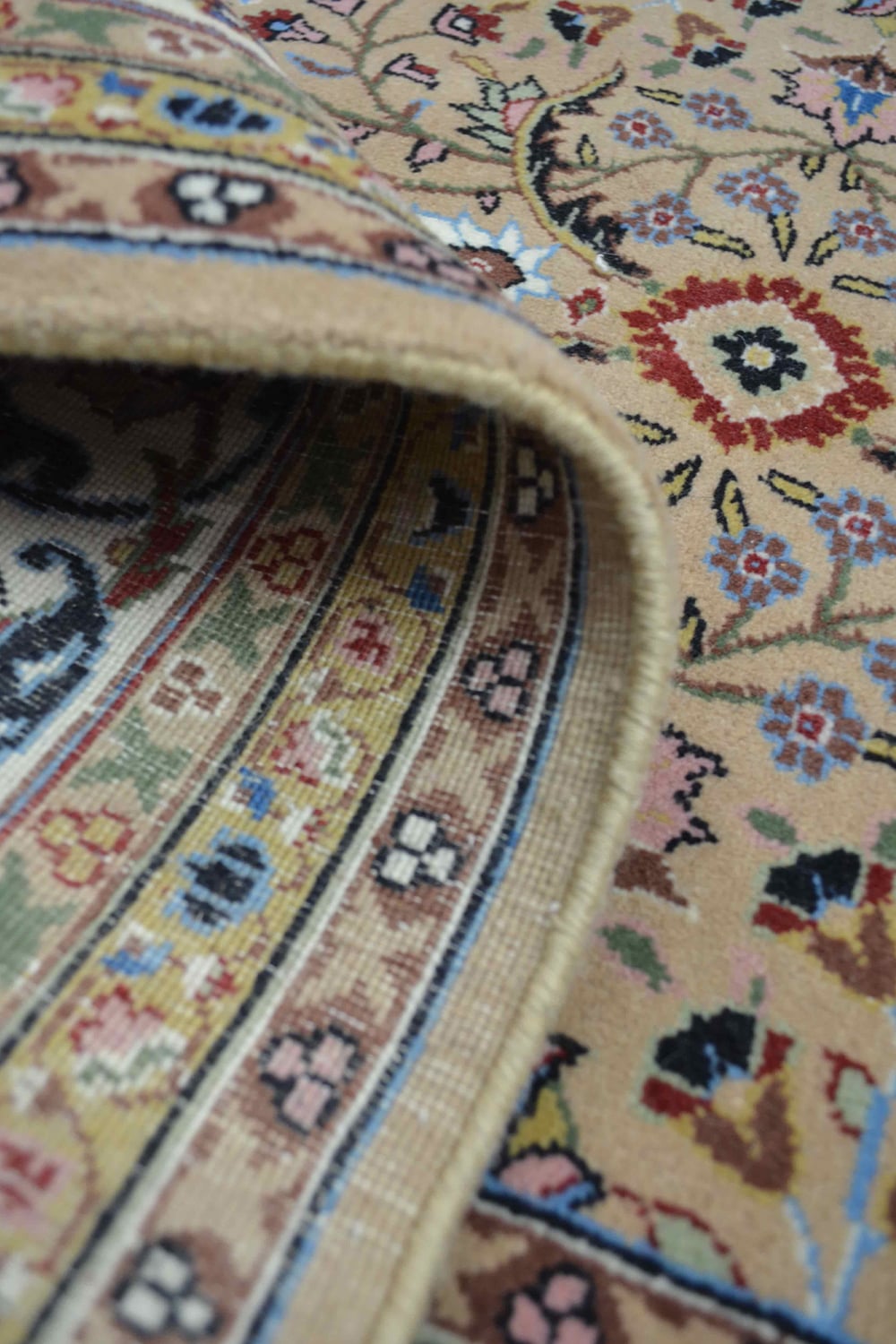60×60 düğüm kalitesinde, m²’de yaklaşık 360.000 ilmek sıklığına sahip bu Hereke halısı, pamuk saçak üzerine yün iplikle özenle dokunmuştur. Bu yüksek ilmek yoğunluğu sayesinde desenler son derece net ve detaylı bir şekilde ortaya çıkar.
