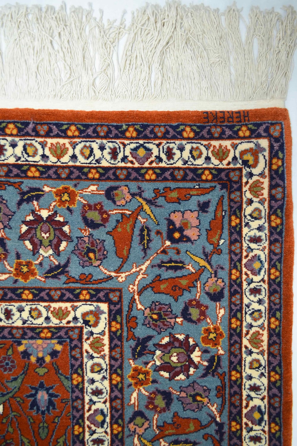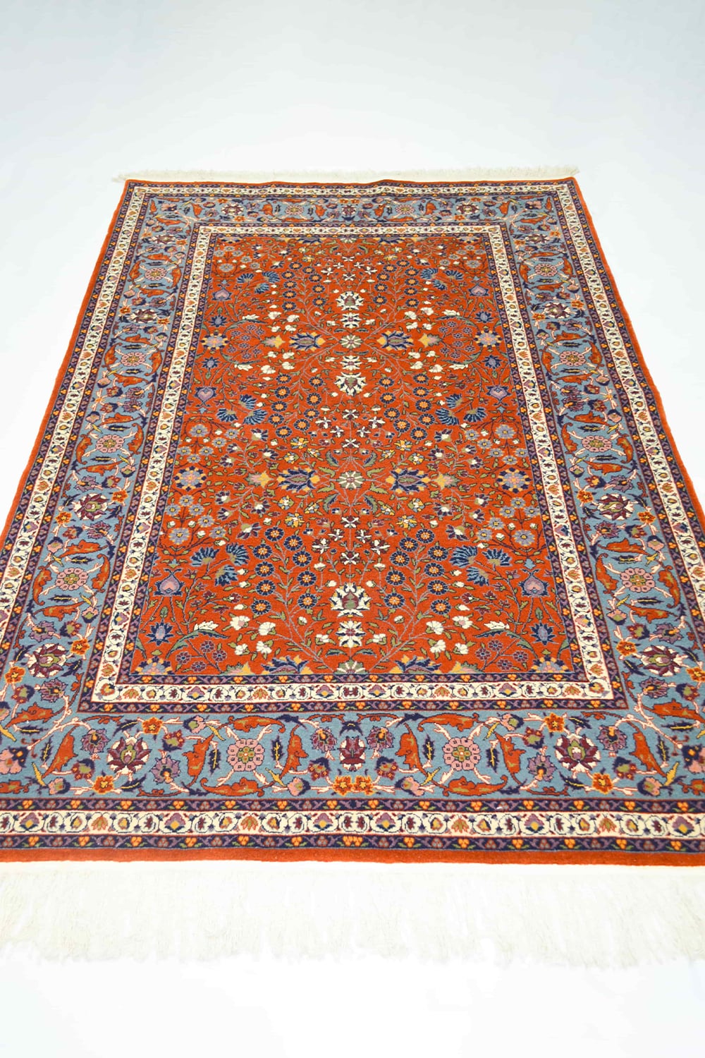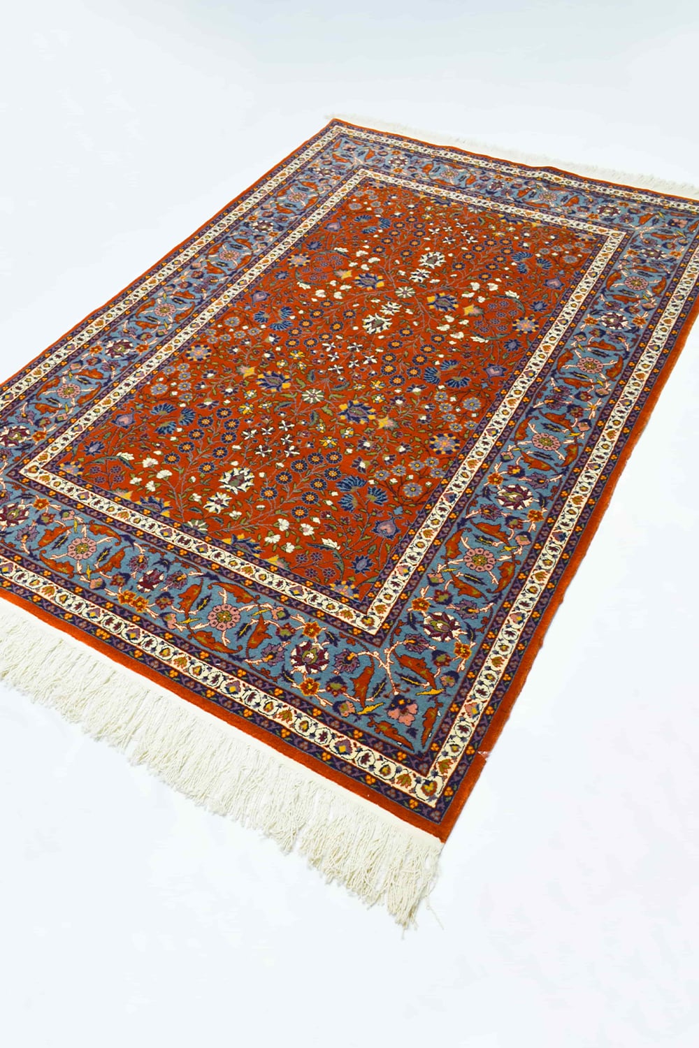 Yedi Dağın Çiçeği Desenli Kiremit Renk Yünden El Dokuma Hereke Halısı 131x192 Cm