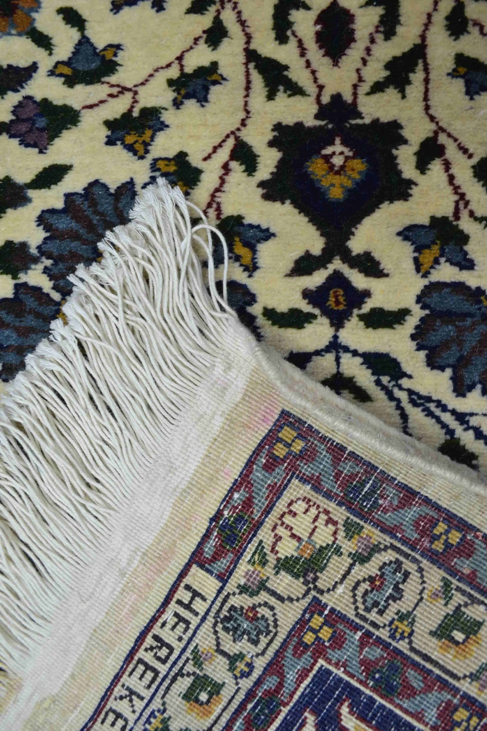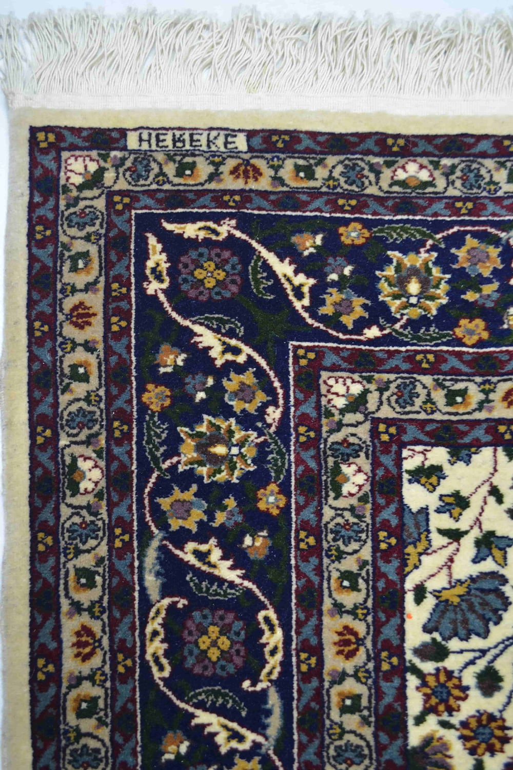 60×60 düğüm kalitesinde, metrekaresinde yaklaşık 360.000 ilmek sıklığına sahip bu orijinal Hereke halısı, pamuk saçak üzerine yün iplikle özenle el dokuma olarak üretilmiştir. Hereke halıcılığının seçkin örneklerinden biri olan bu model, “Yedi Dağın Çiçeği” olarak bilinen zarif desenle süslenmiştir.