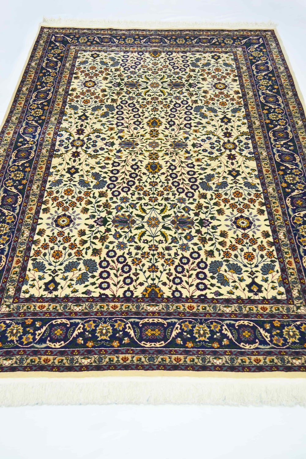 Yedi Dağın Çiçeği Desenli Krem Renk El Dokuma Hereke Halısı 140x195 Cm