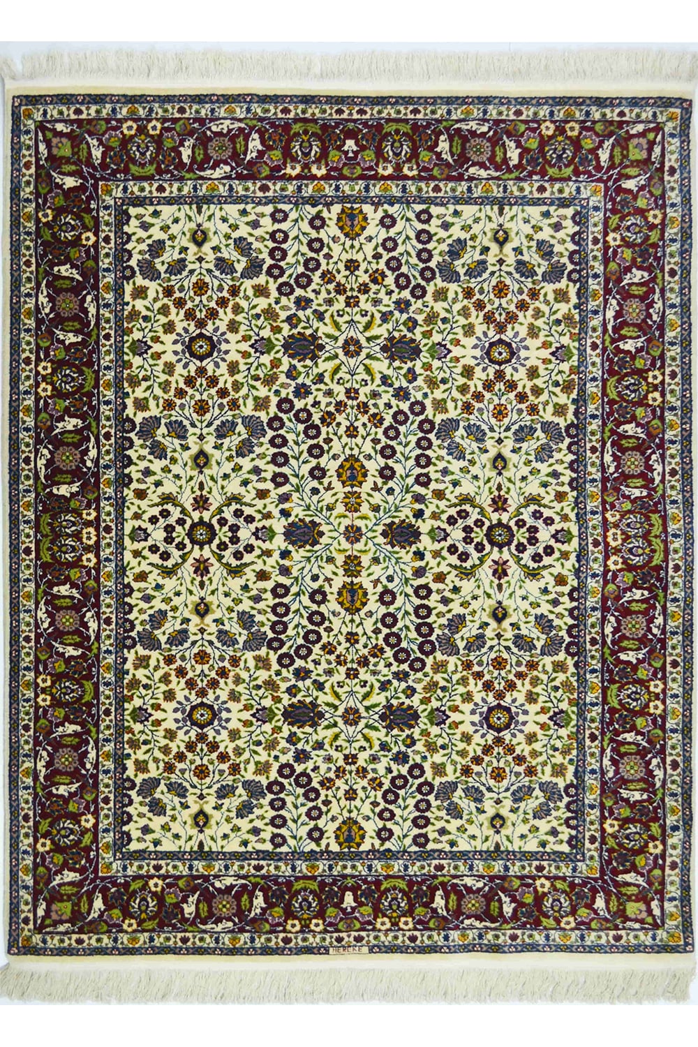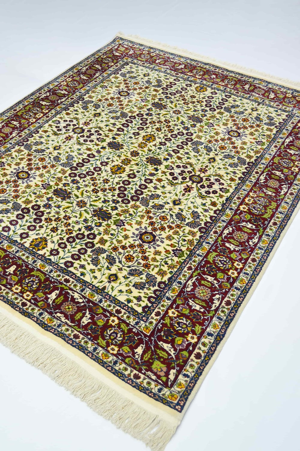 Yedi Dağın Çiçeği Desenli Krem Renk El Dokuma Hereke Halısı 145x175 Cm