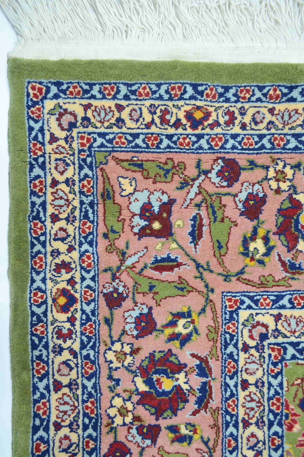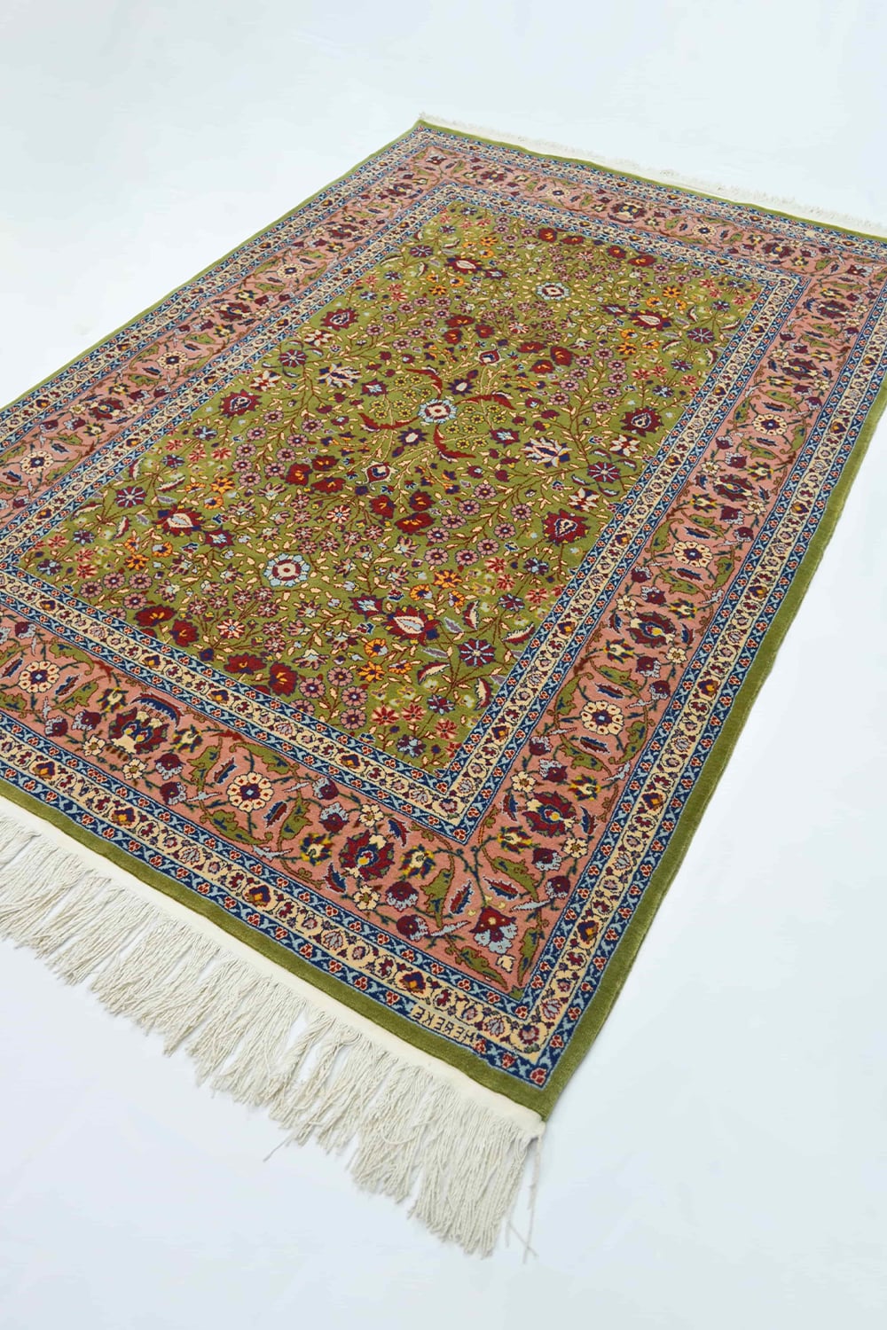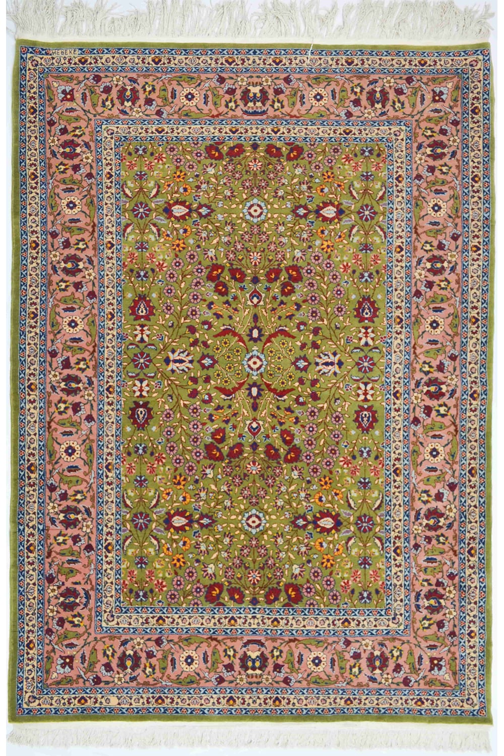 Yedi Dağın Çiçeği Desenli Pembe Ve Yeşil Renk El Dokuma Hereke Halısı 138x204 Cm