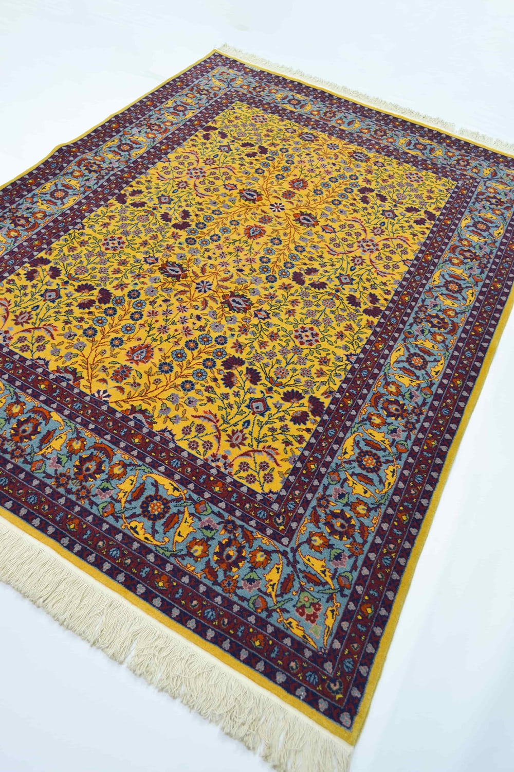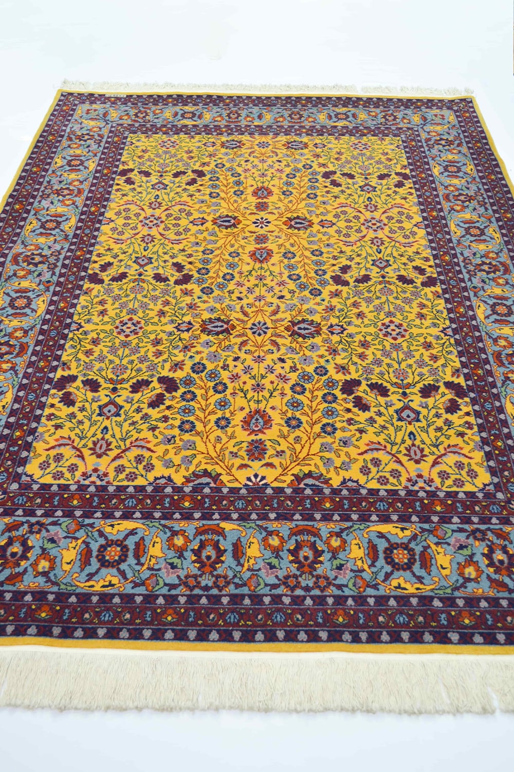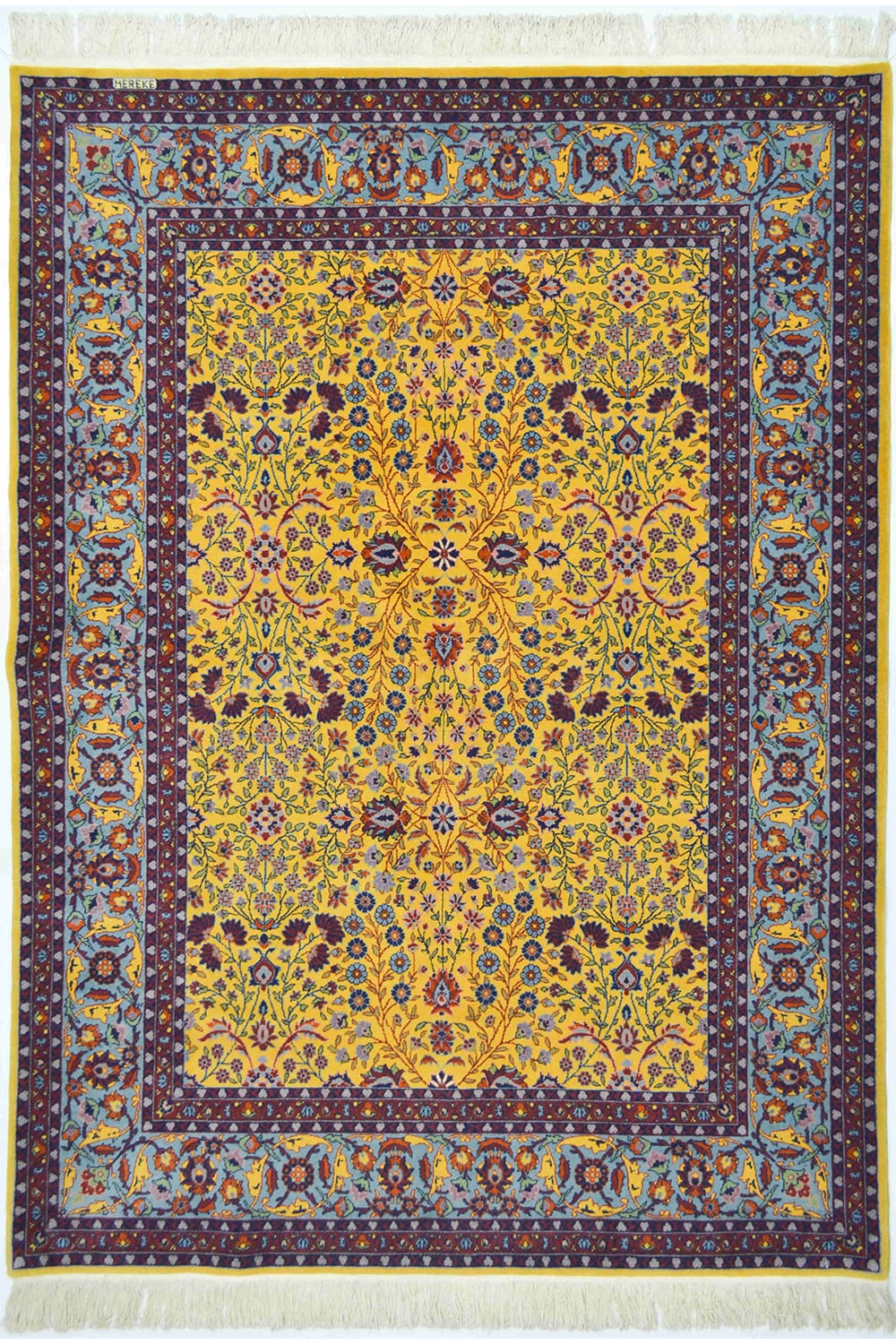 Yedi Dağın Çiçeği Desenli Sarı Renk Geleneksel El Dokuma Hereke Halısı 151x202 Cm