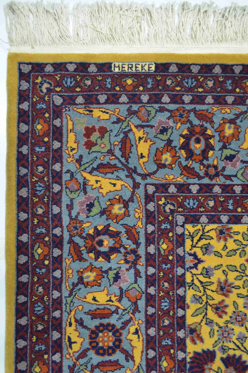 60×60 düğüm kalitesinde, metrekaresinde yaklaşık 360.000 ilmek sıklığına sahip bu orijinal Hereke halısı, pamuk saçak üzerine yün iplikle özenle el dokuma olarak üretilmiştir. Hereke halıcılığının seçkin örneklerinden biri olan bu model, “Yedidağın Çiçeği” olarak bilinen zarif desenle süslenmiştir.