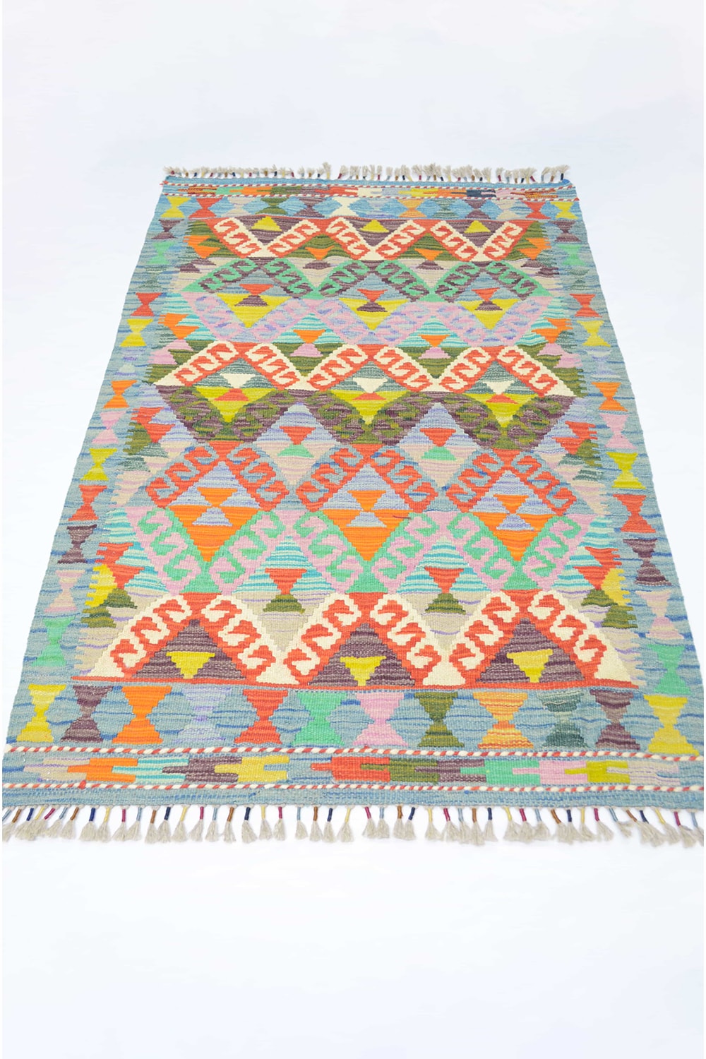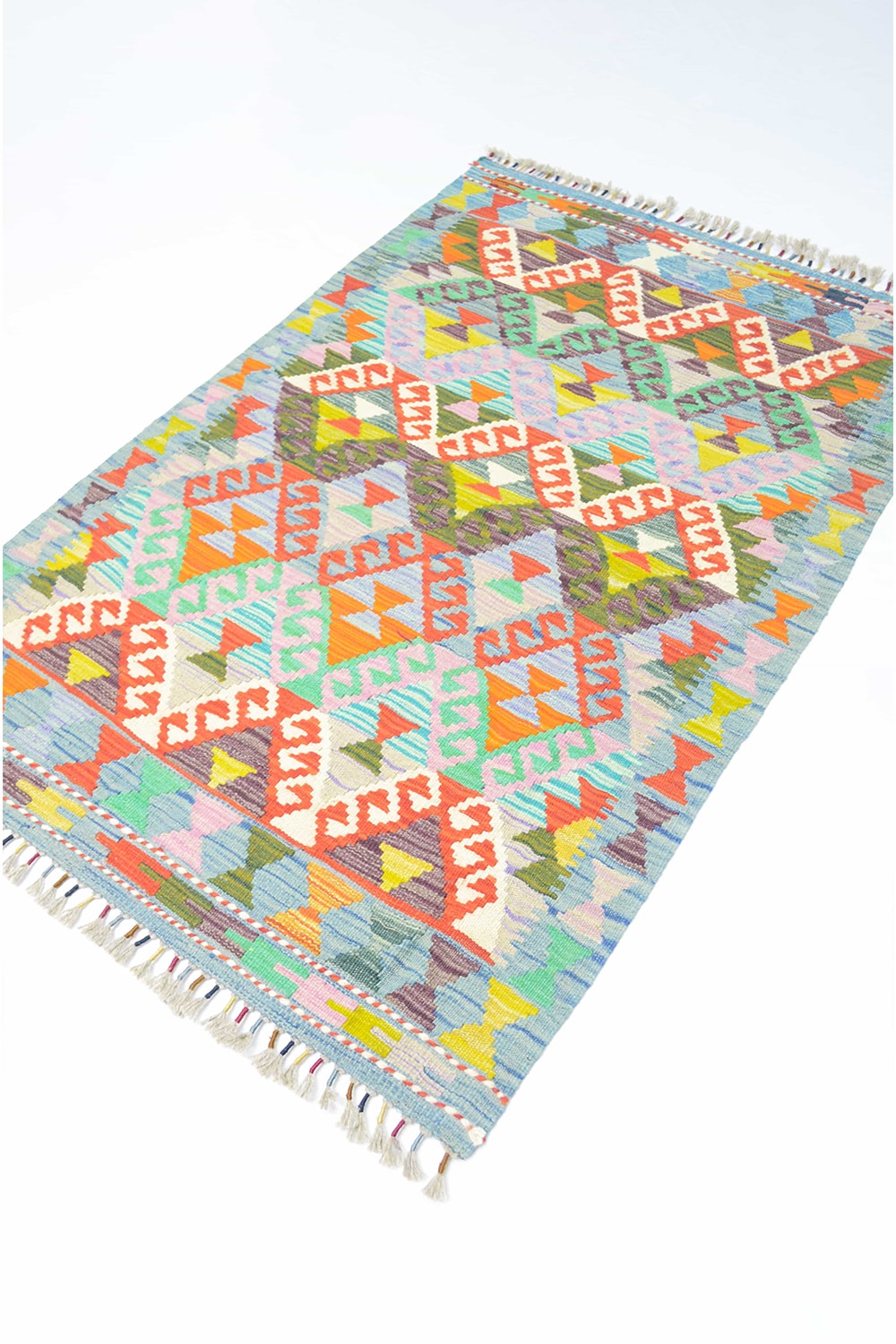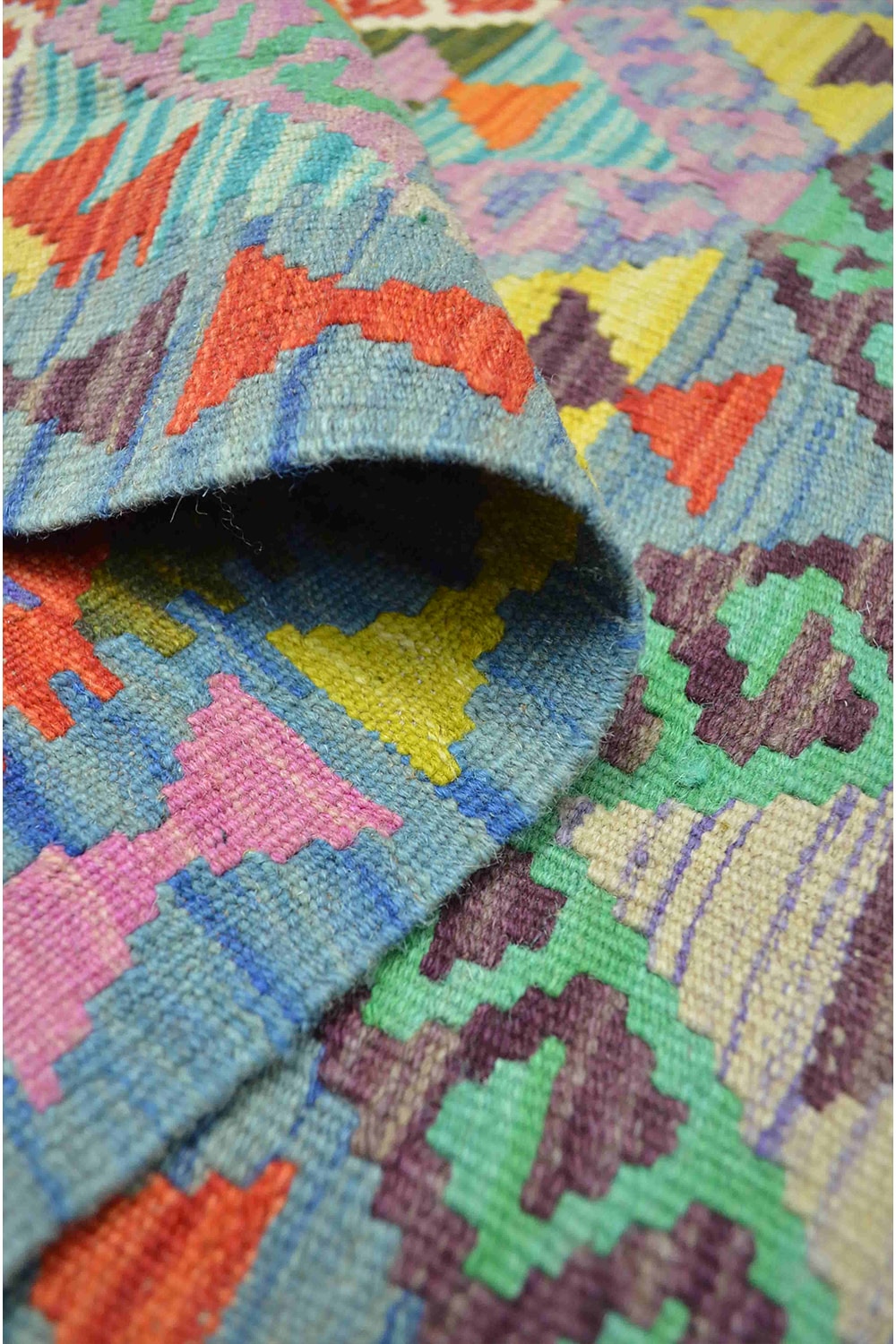 Afgan Kilimi, yün saçak üzerine yün iplikten, geleneksel el dokuma tekniğiyle hazırlanmış özel bir kilimdir. Canlı renkleri ve geometrik desenleriyle otantik bir hava katar, farklı dekorasyonlara kolayca uyum sağlar.