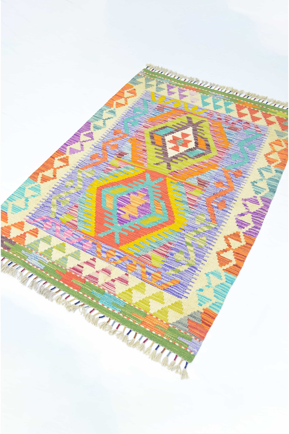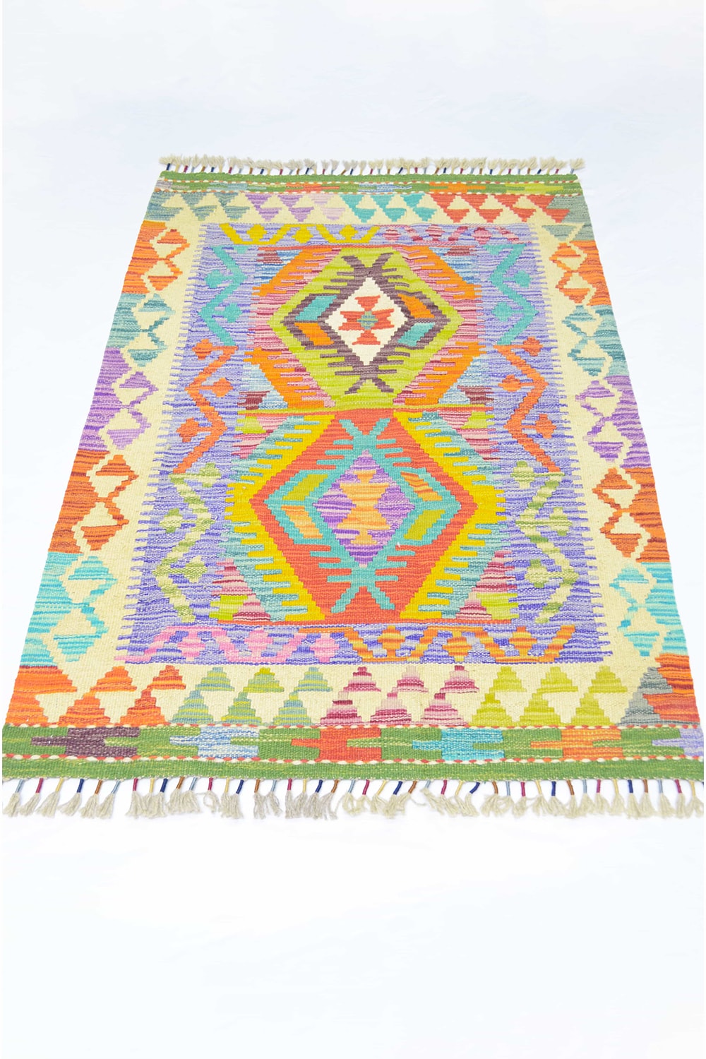 Yün İplikten El Dokuma Afgan Kilim 86x122 Cm