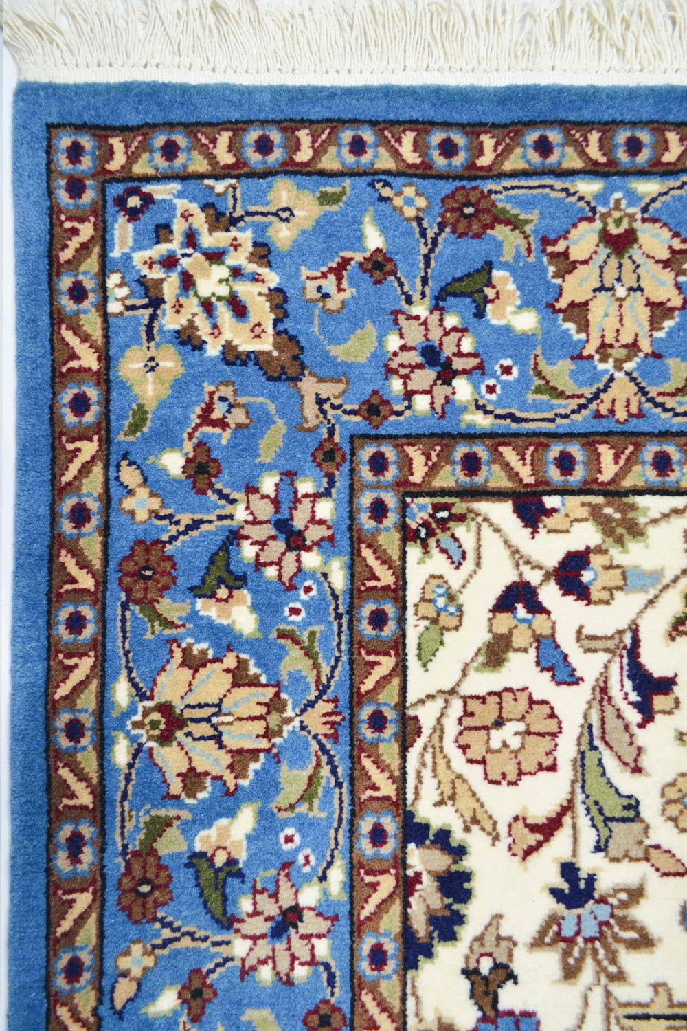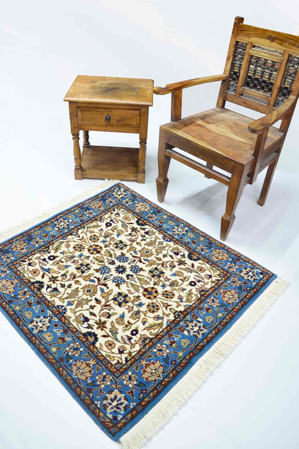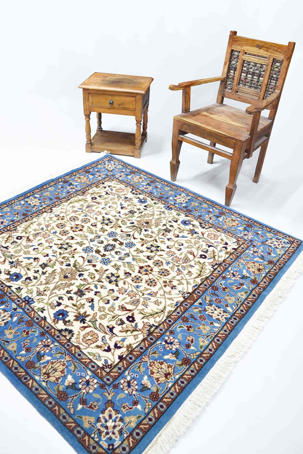Yünden El Dokuma Krem Ve Mavi Renk Kare İran Halısı
