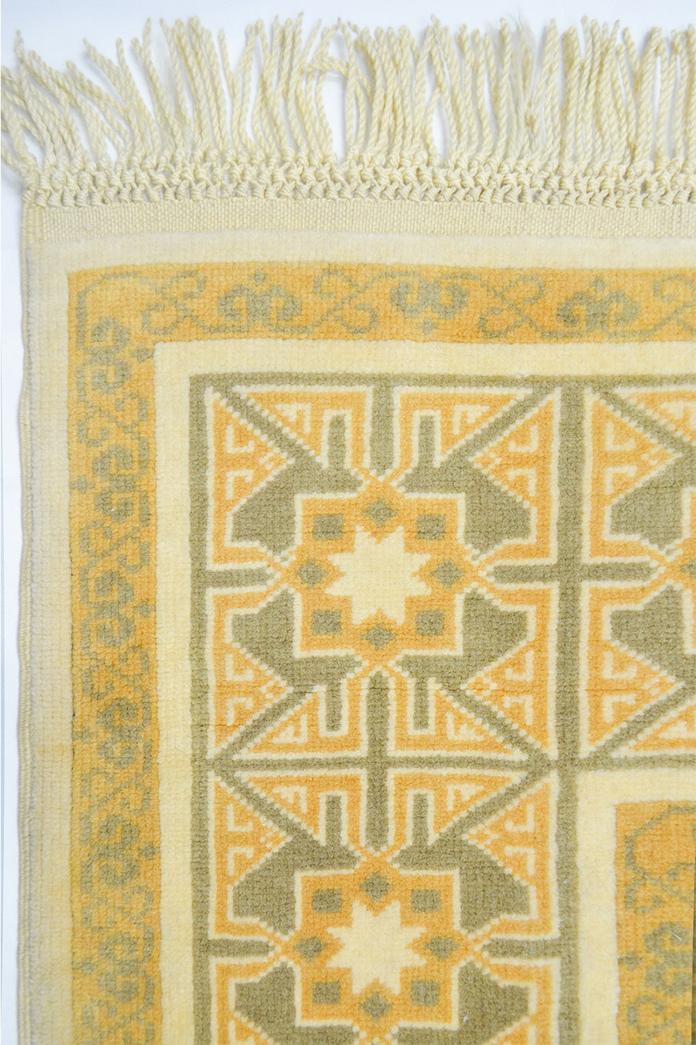 80x146 cm (1.17 m²) ölçüsündeki halı, bej zemin üzerine sade ve dengeli motifler taşır ve Yörük kültürünün doğayla uyumlu estetik anlayışını evinize taşır. Dayanıklı yün dokusu, uzun yıllar kullanıma uygundur ve farklı dekorasyon stillerine uyum sağlar.