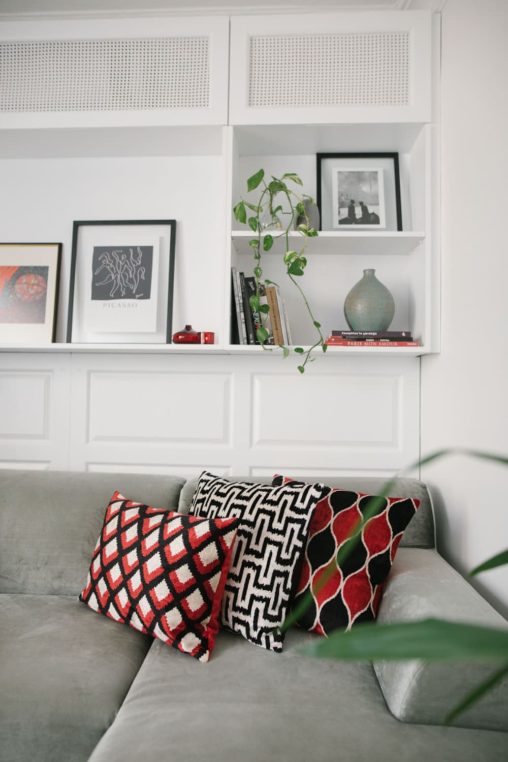 • İstanbul'da üretilen el dokuması ipek kadife ikat yastık kılıfı.