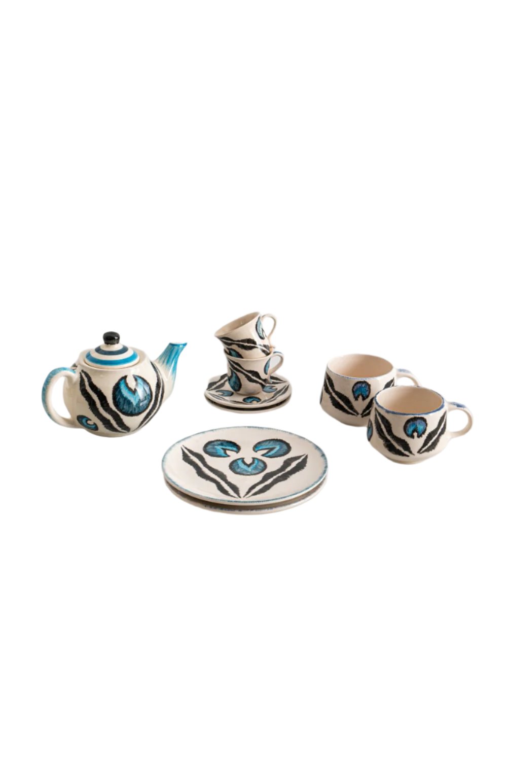 Sete dahil olan ürünler: 1 çaydanlık . 2 kahve kupası . 2 Türk kahvesi fincanı . 2 tatlı tabağı (18cm)