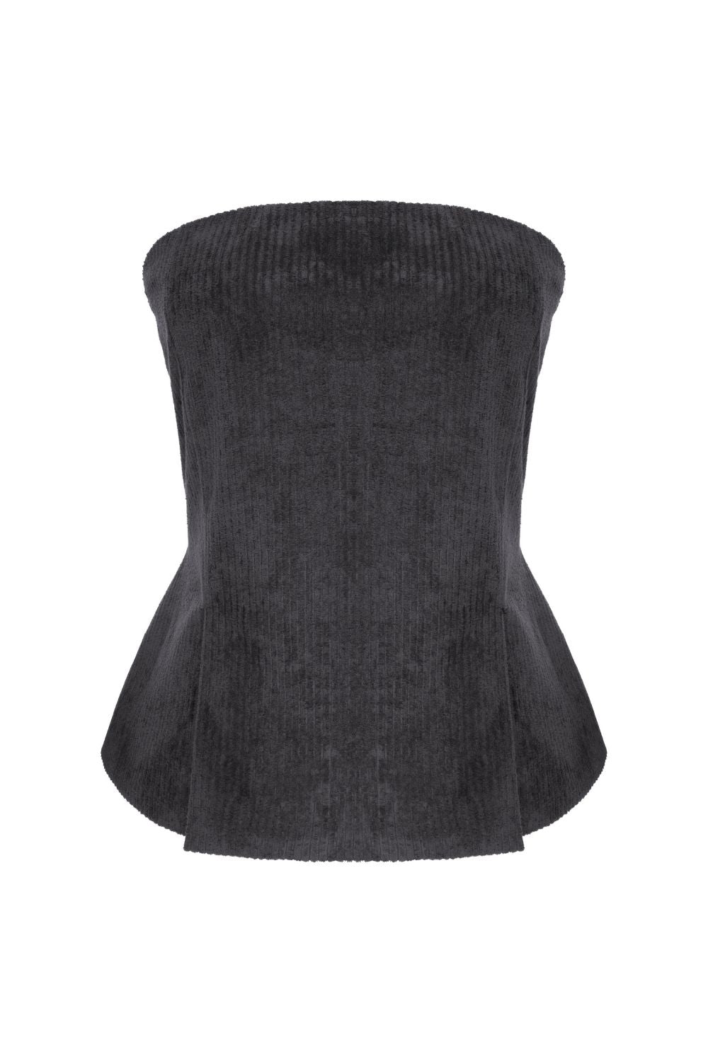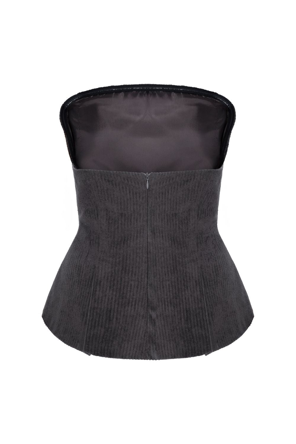 Fitilli Kadife Straplez Bluz Gri