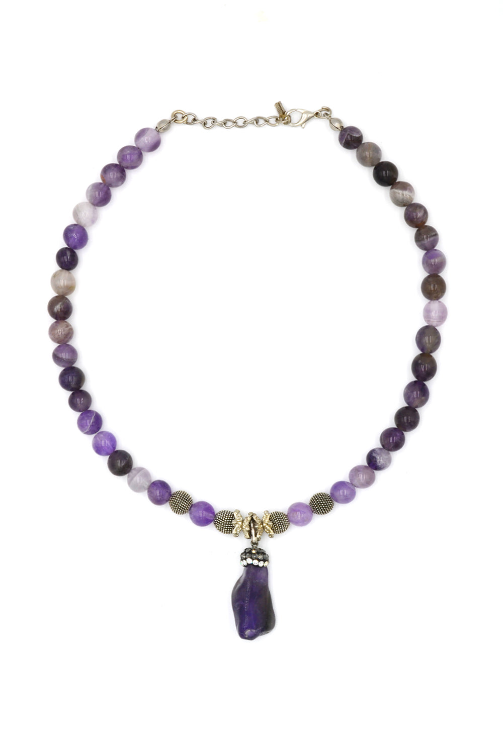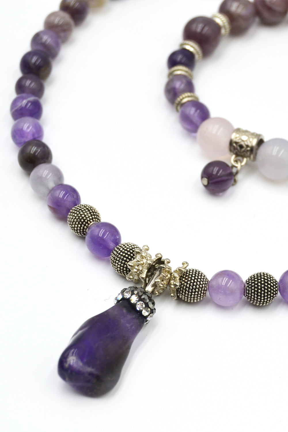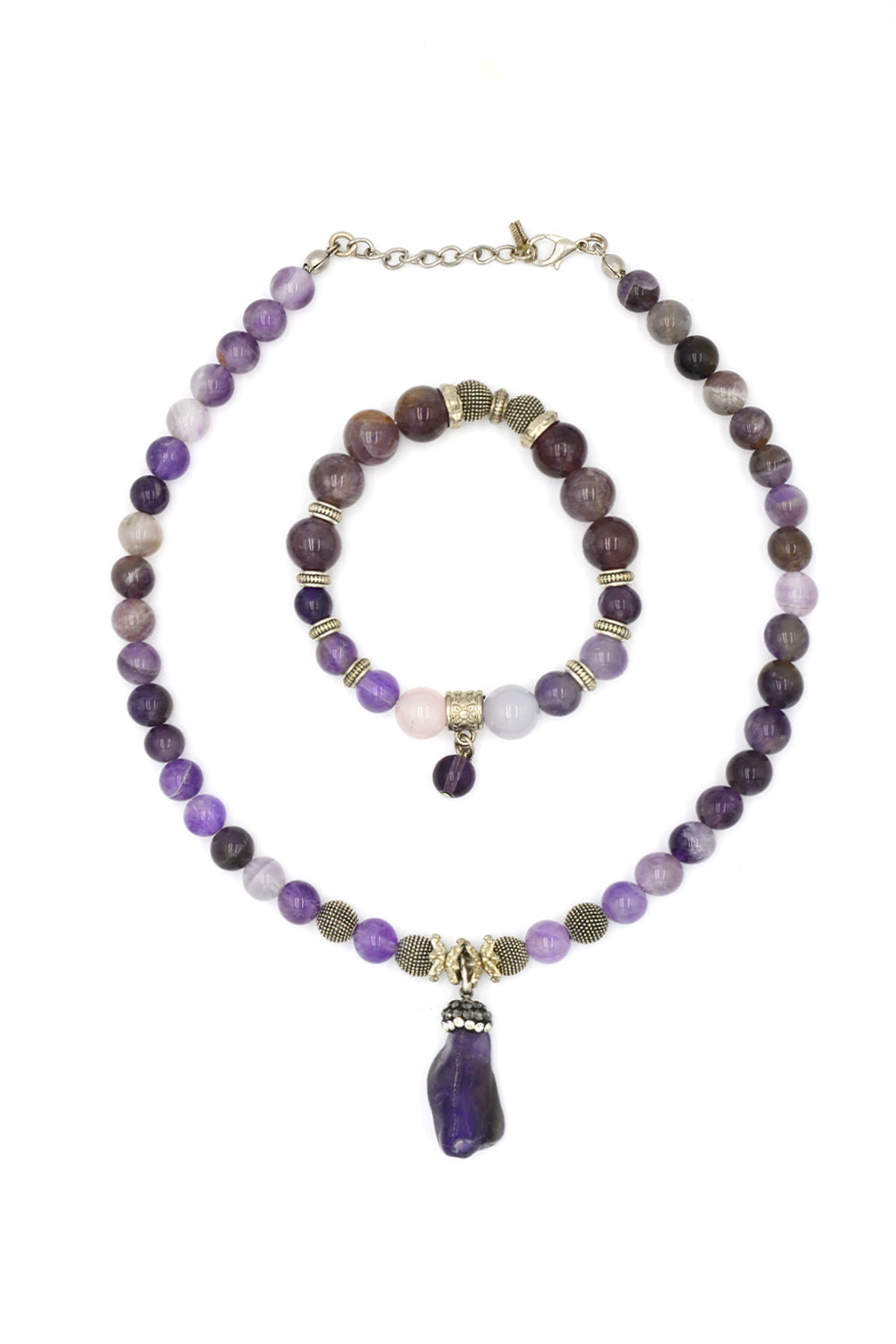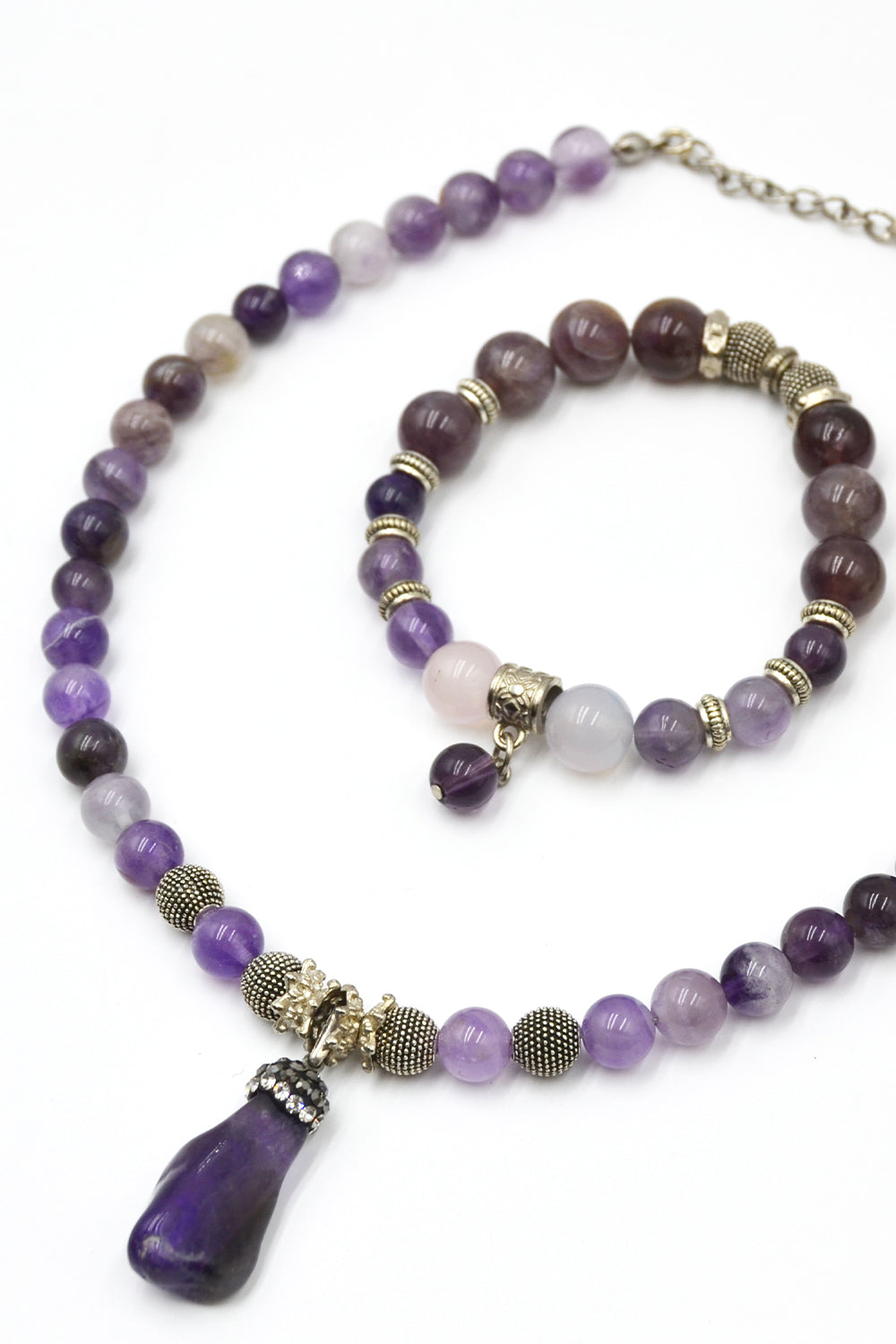 Mor Akik Taşlı Kolye & Bileklik Seti – Ametist Uç Detaylı