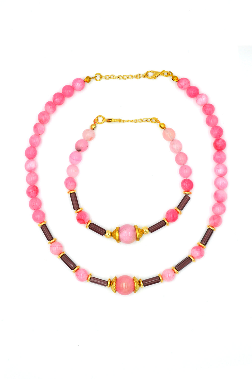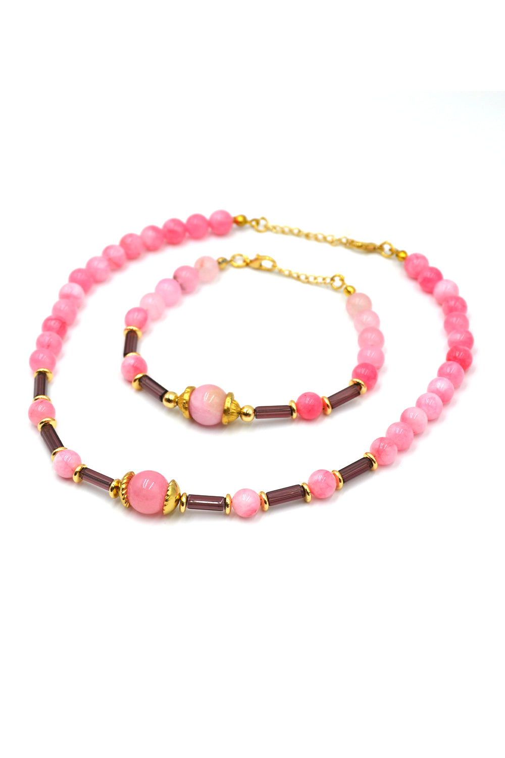 Pembe Akik & Ametist Kolye & Bileklik Seti