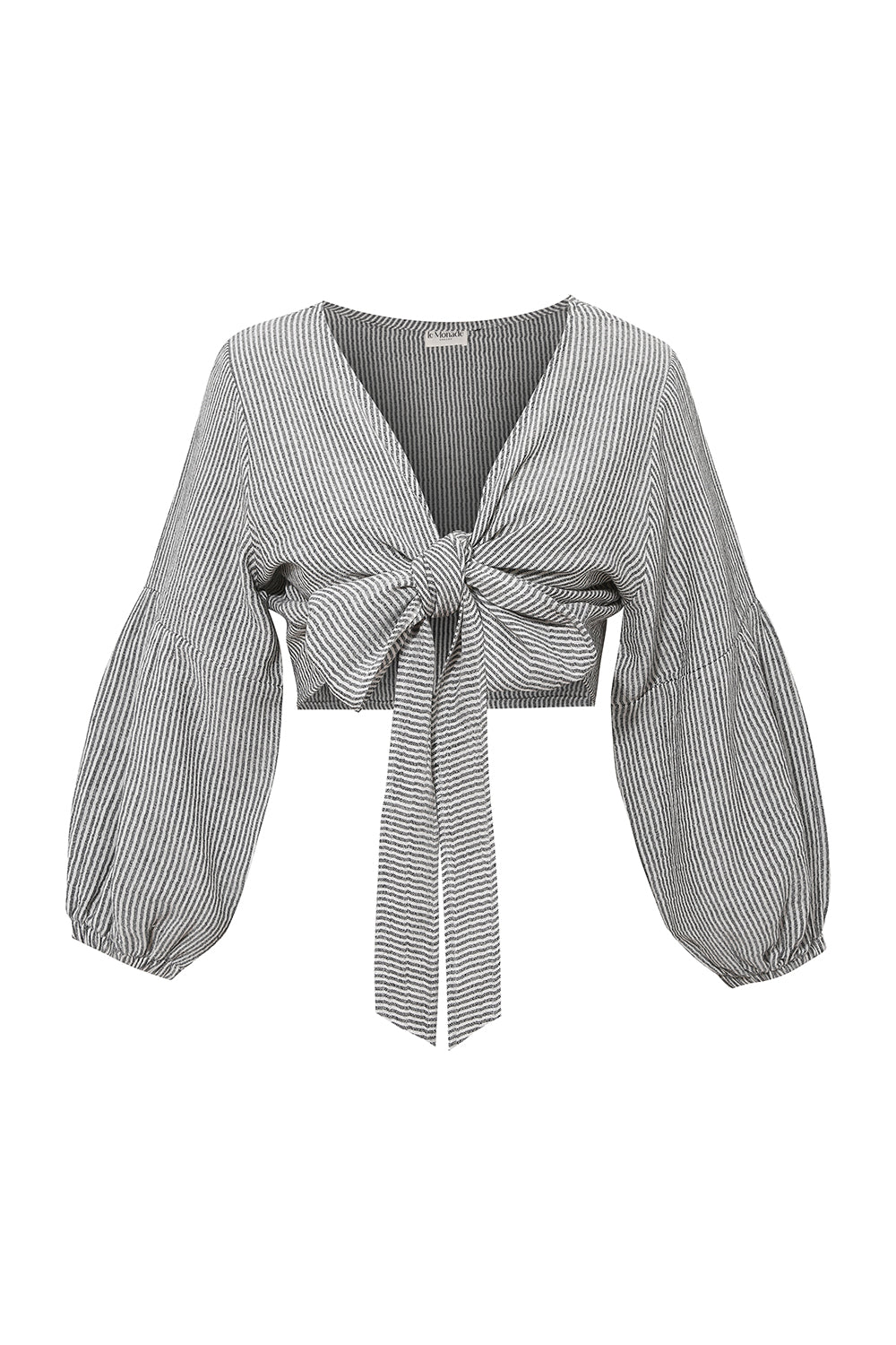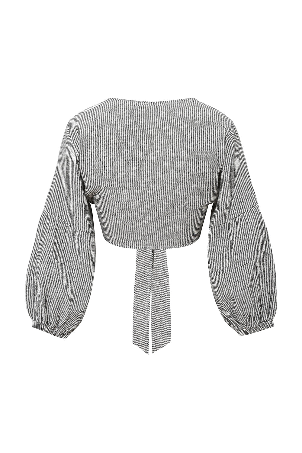 Antrasit Siyah Çizgili Bağlamalı Bluz