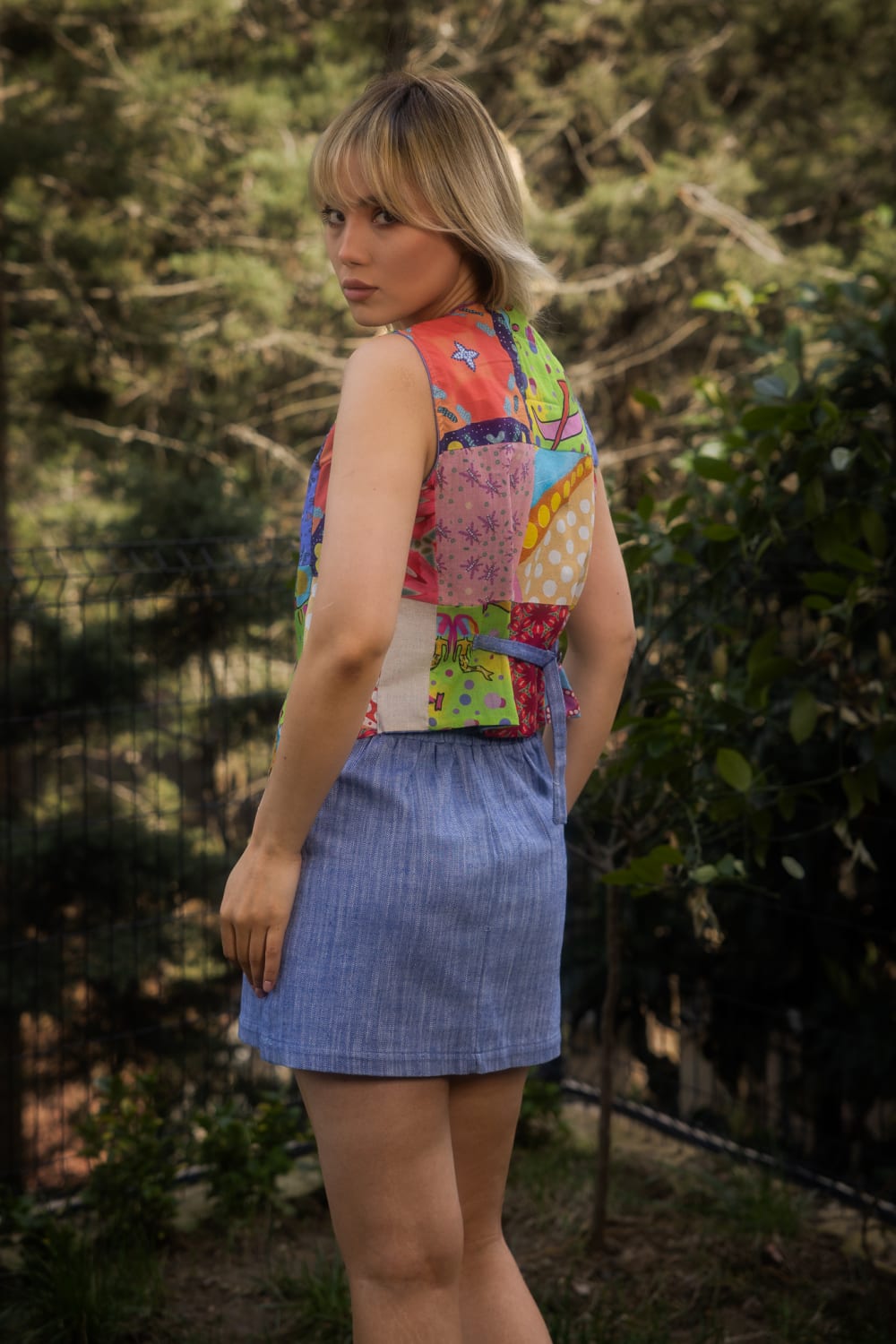 Auroro Mini EtekDesenler, Sanatçı Defne Camcıoğlu’nun eserlerinden oluşturulmuştur.Viskon karışımlıdır,Ürün, dökümlü ve yumuşak dokulu viskon karışımlı kumaştan üretilmiştir.Mini boy yüksek bel detaylı ve beli lastikli bir ürün patch birleşimleri ile şık bir görünüm sunmkatadır.BAKIM ÖNERİLERİ:30 derecede yıkama yapılabilir,Ağartıcı kullanılamaz,Makinede kurutmayınız.S BedenBel: 72 cm Basen: 106 cm Boy: 42 cmM BedenBel: 76 cm Basen: 110 cm Boy: 42 cm