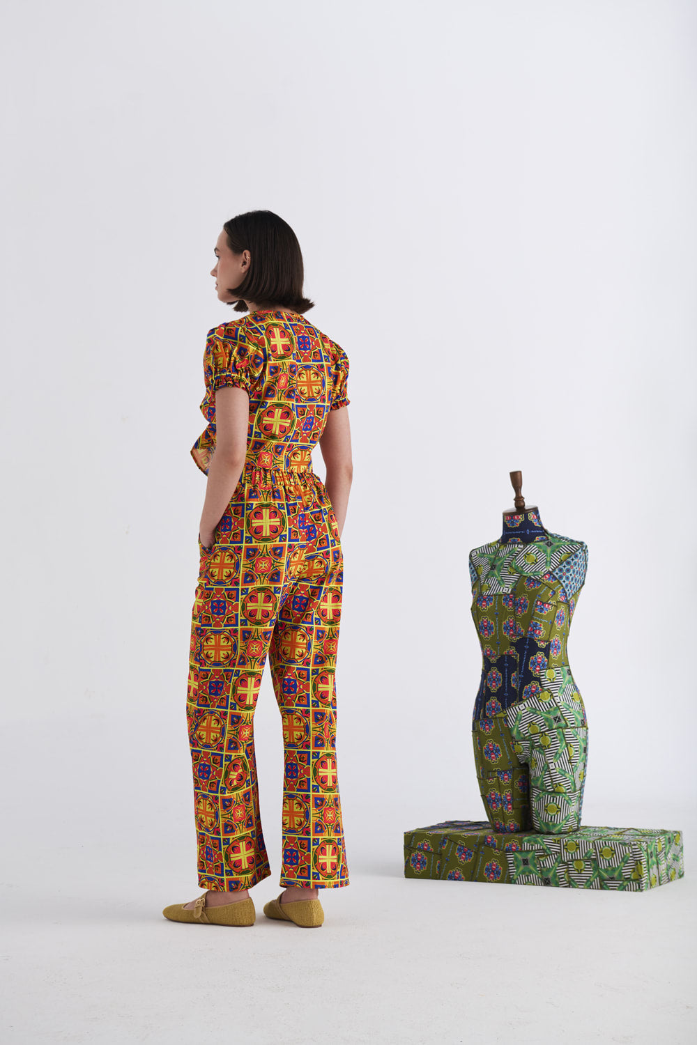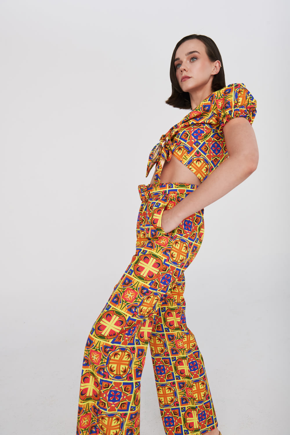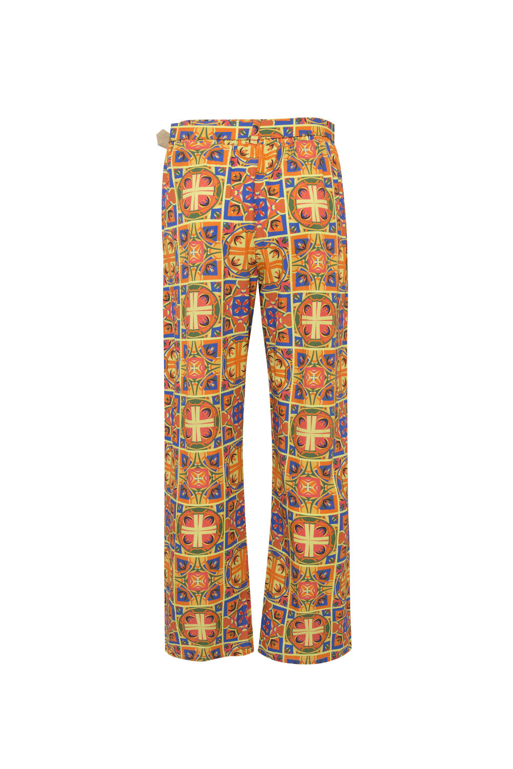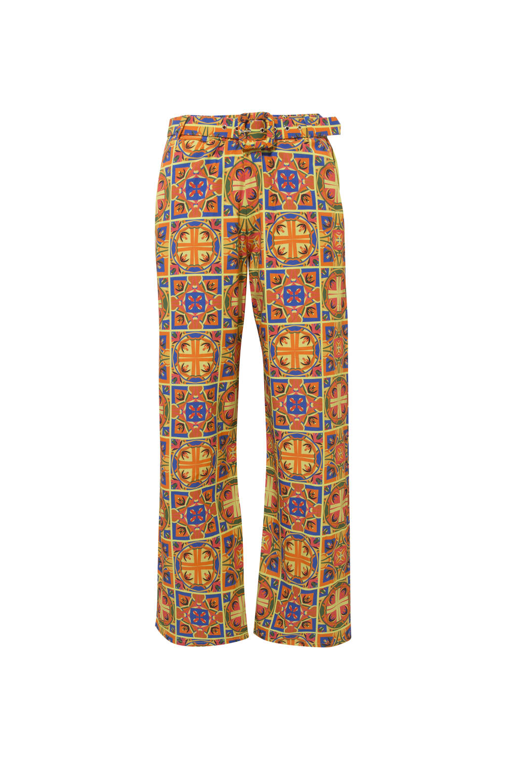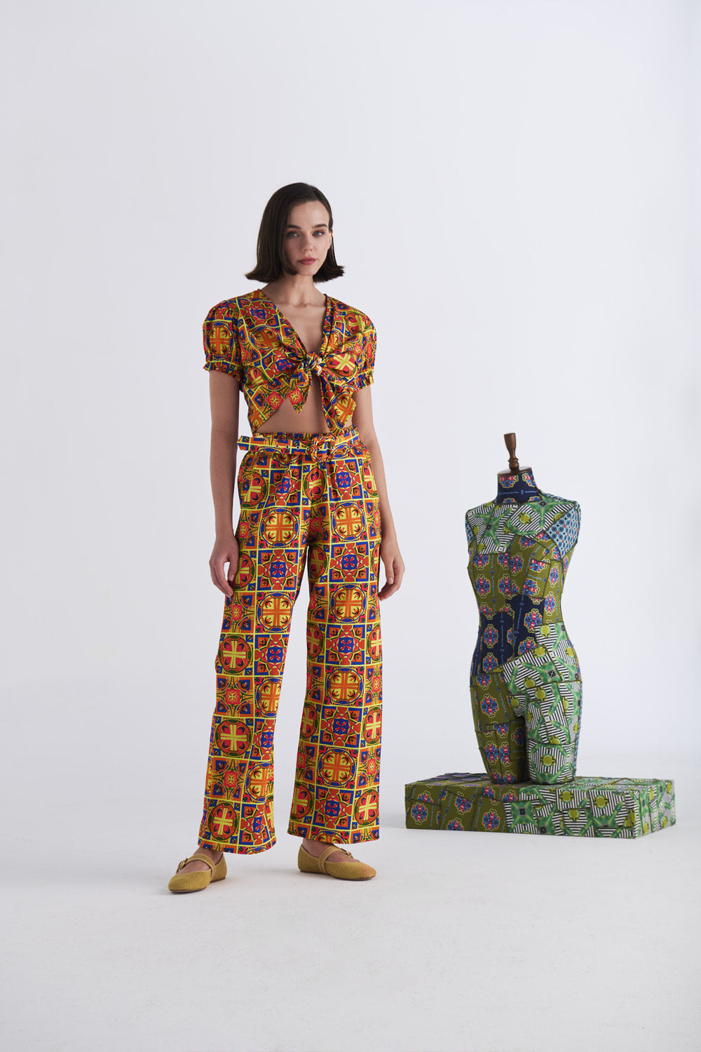 Barcelona Kemer Detaylı PantolonDesenler, Sanatçı Defne Camcıoğlu’nun eserlerinden oluşturulmuştur,%100 Pamuk,Ürün dayanıklılık ve konfor gözetilerek, ince dokulu ve tok duruşlu poplin kumaş ile özenle tasarlanmıştır,Geometrik desenlerden oluşan eser, poplin kumaş'a dijital baskı yöntemi ile basılmıştır,Ürün beli lastikli, uzun boy detaylıdır,Yüksek bel olan ürün, kemer detayı ile şık bir görünüm sunmaktadır.BAKIM ÖNERİLERİ:30 derecede yıkama yapılabilir,Ağartıcı kullanılamaz,Makinede kurutmayınız."S BedenBoy: 103 cmBel: 62 cmKalça: 94 cmM BedenBoy: 103 cmBel: 66 cmKalça: 98 cm