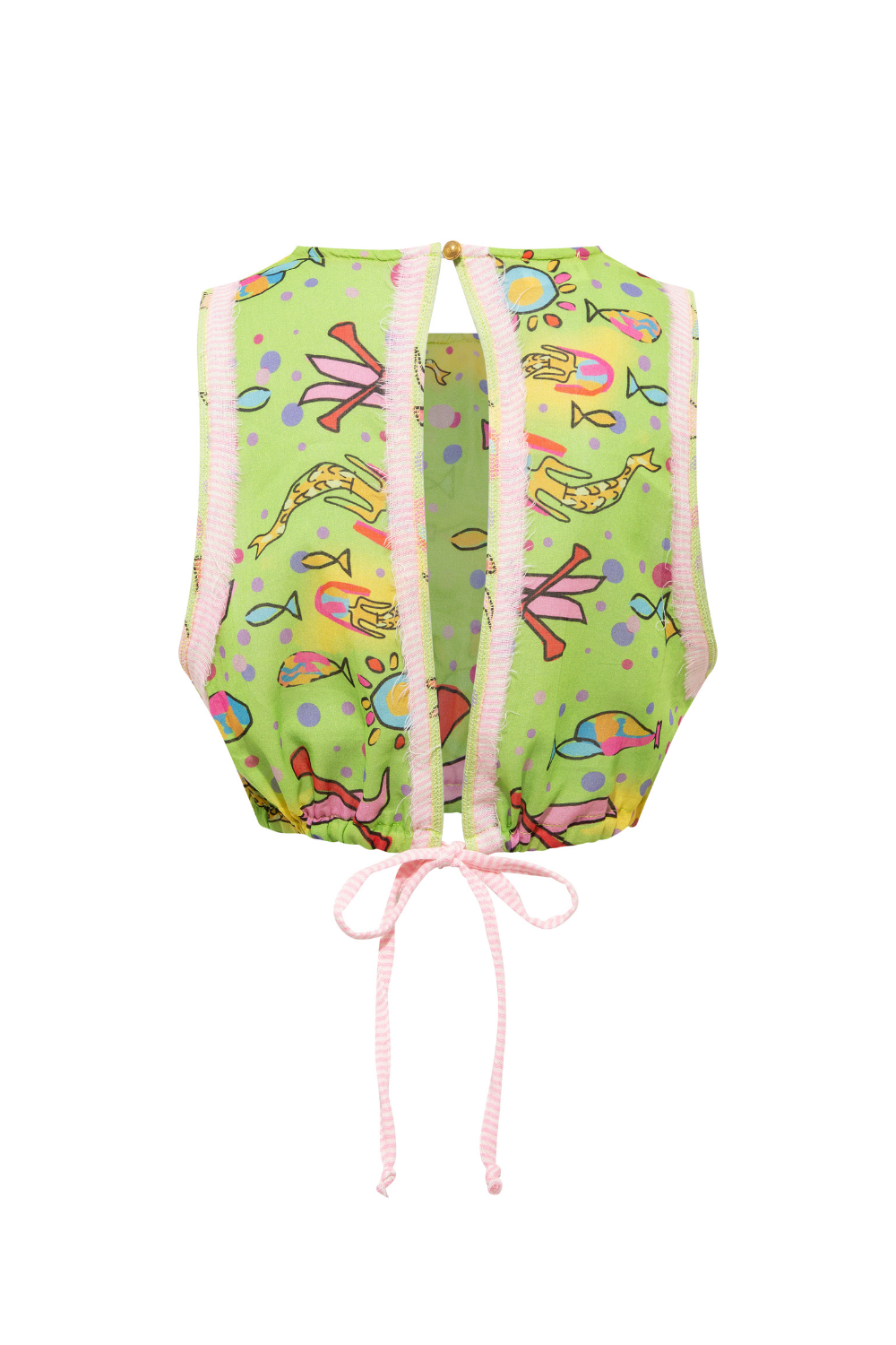 Desenler, Sanatçı Defne Camcıoğlu’nun eserlerinden oluşturulmuştur,%100 Pamuk,*Ürün, ince dokulu ve hafif yapılı vual kumaştan üretilmiştir,Soyut desenlerden oluşan eser, vual kumaş'a dijital baskı yöntemi ile basılmıştır,Kolsuz, bisiklet yaka olan ürün sırt dekoltesi ile şık bir görünüm sunmaktadır.BAKIM ÖNERİLERİ:30 derecede yıkama yapılabilir,Ağartıcı kullanılamaz,Makinede kurutmayınız.Bel: 88 cmGöğüs: 74 cmBoy: 30 cm