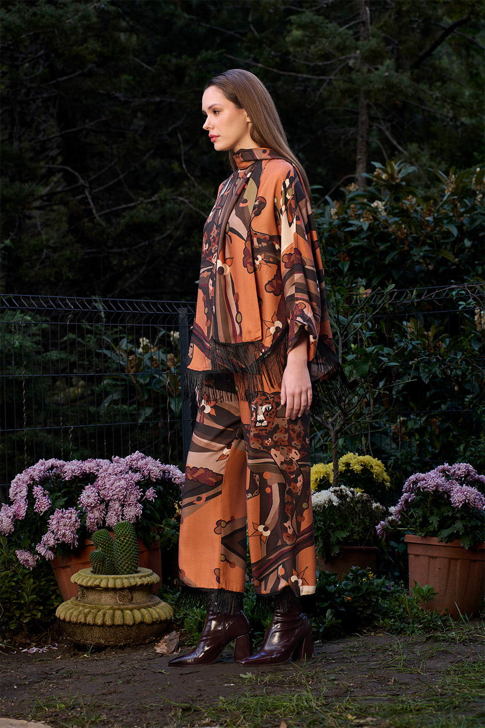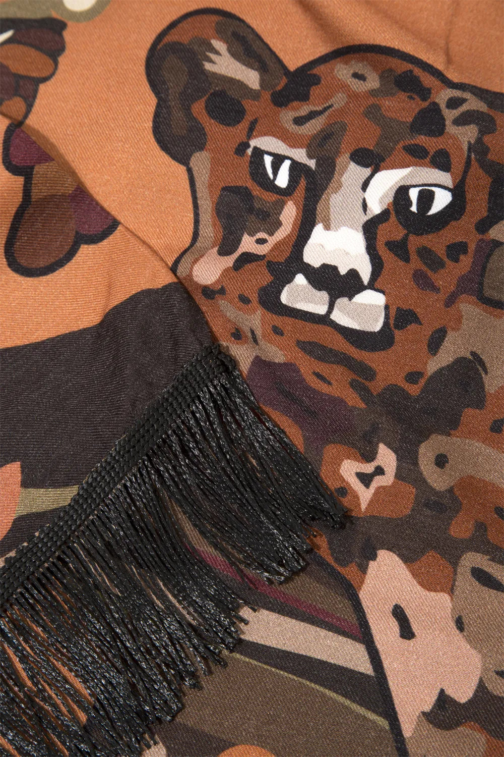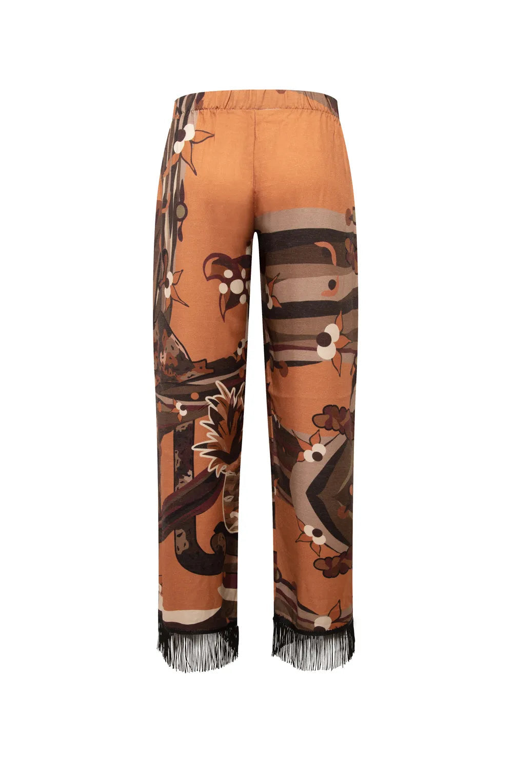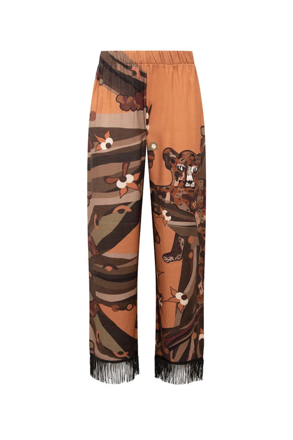 Kahve Kaplan Desenli Saçak Detaylı Pantolon