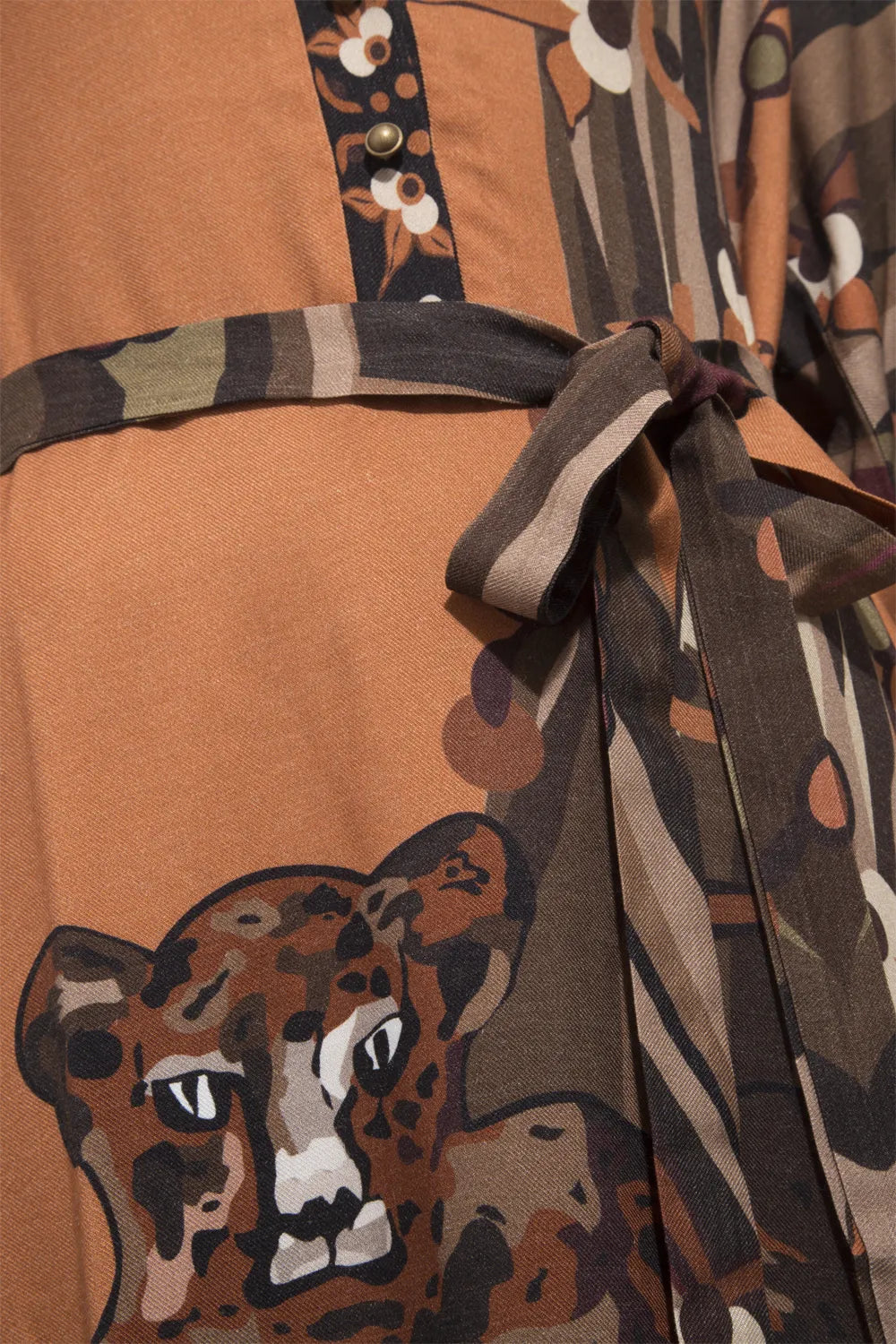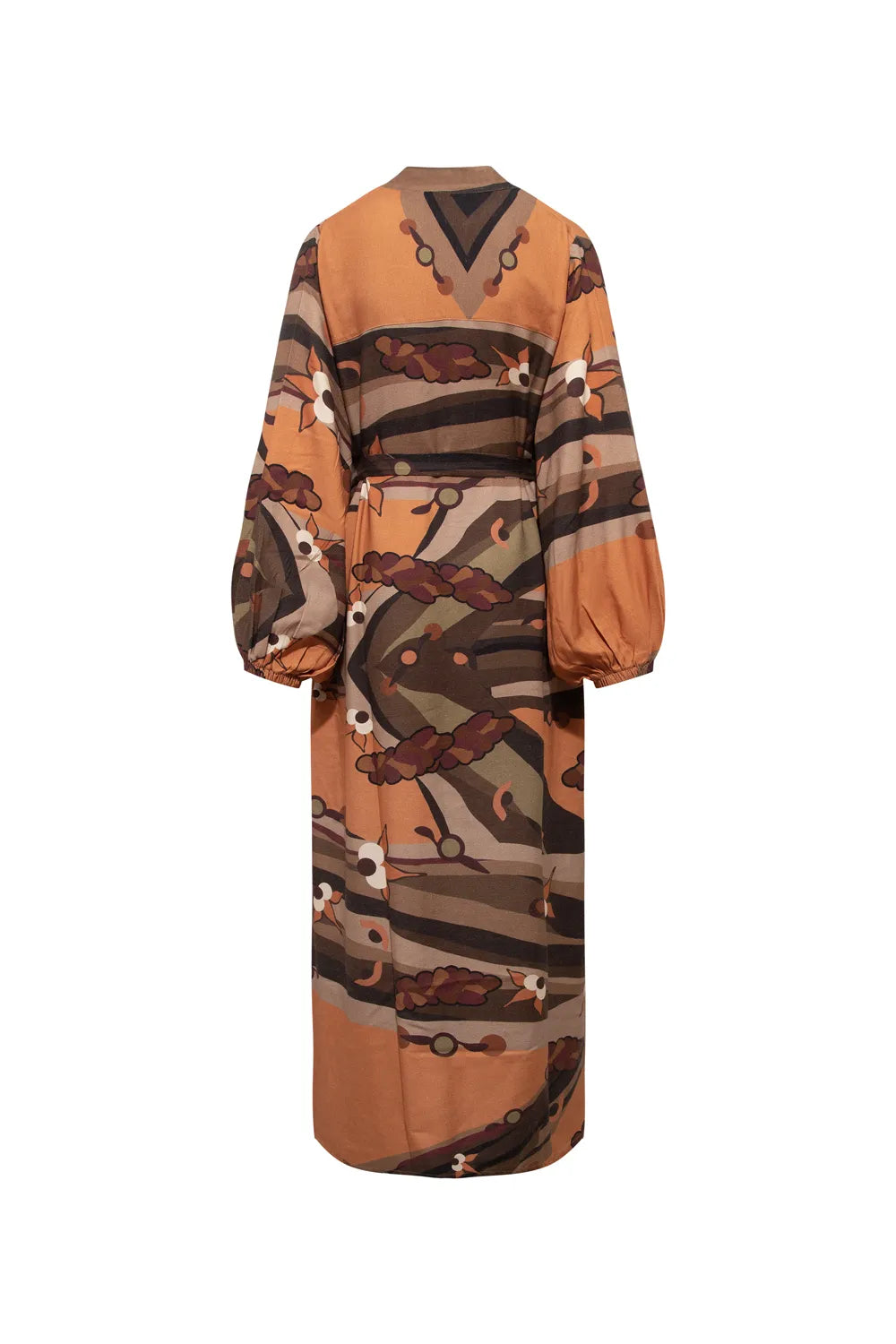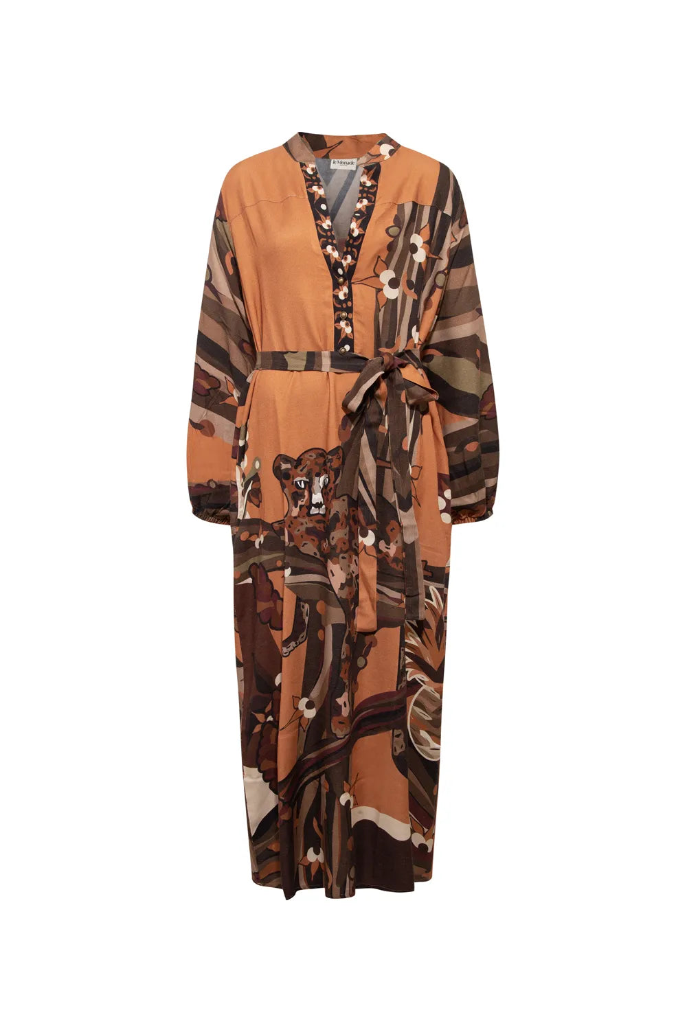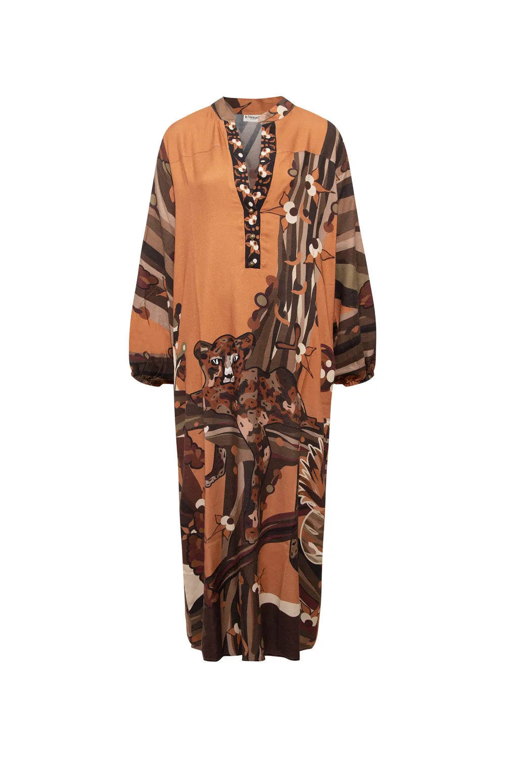 Desenler sanatçı Defne Camcıoğlu'nun resimlerden oluşmuştur,%100 viskon içeriklidir, dokuma türü twilldir.Desenler dijital baskı yöntemi ile basılmıştır,Ürünler özel ve detaylı bir ölçü çalışması ile birleştirilmiş beden olarak üretilmiştir; S/M: 36-38 M/L: 38-40 bedenlerini karşılamaktadır,Hakim yaka olan elbise cep ve kuşak detayı ile bir çok okazyona uyum sağlamaktadır.