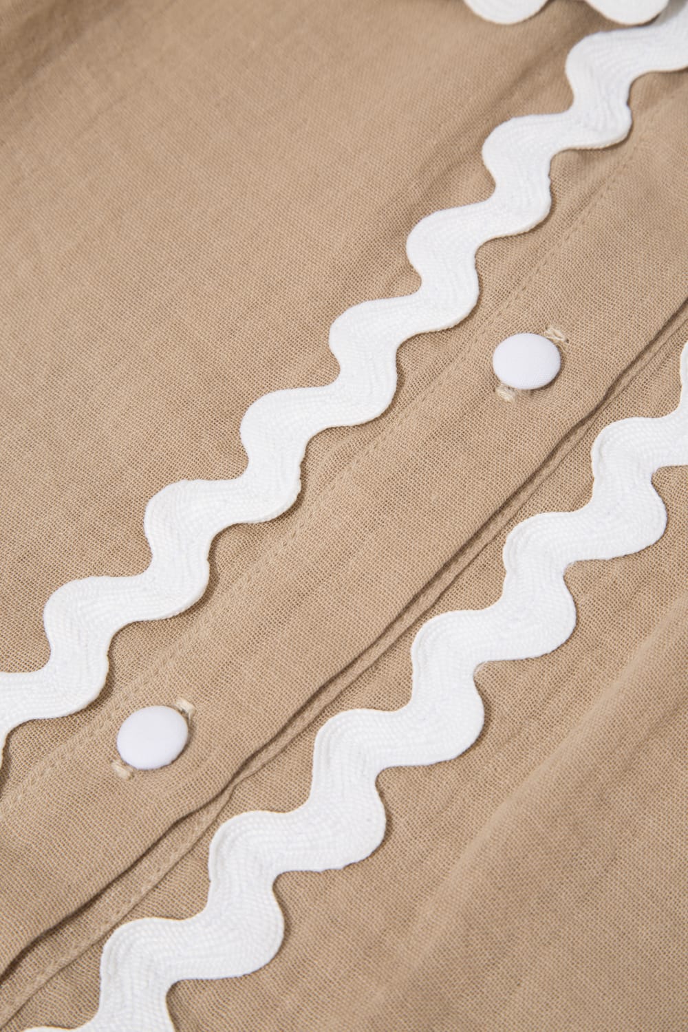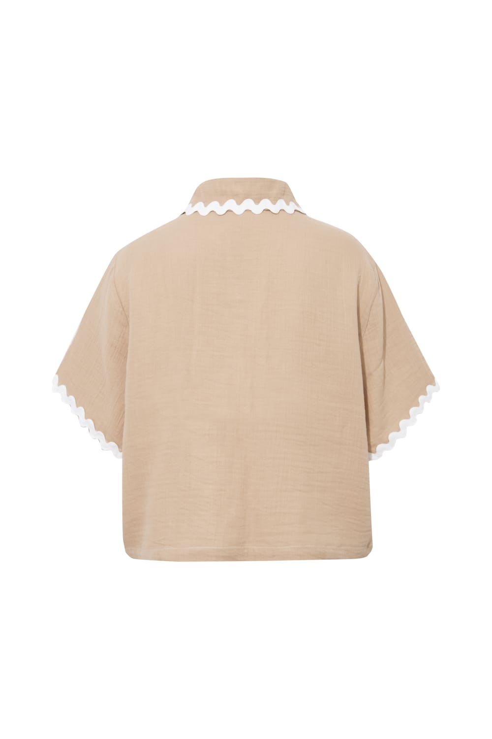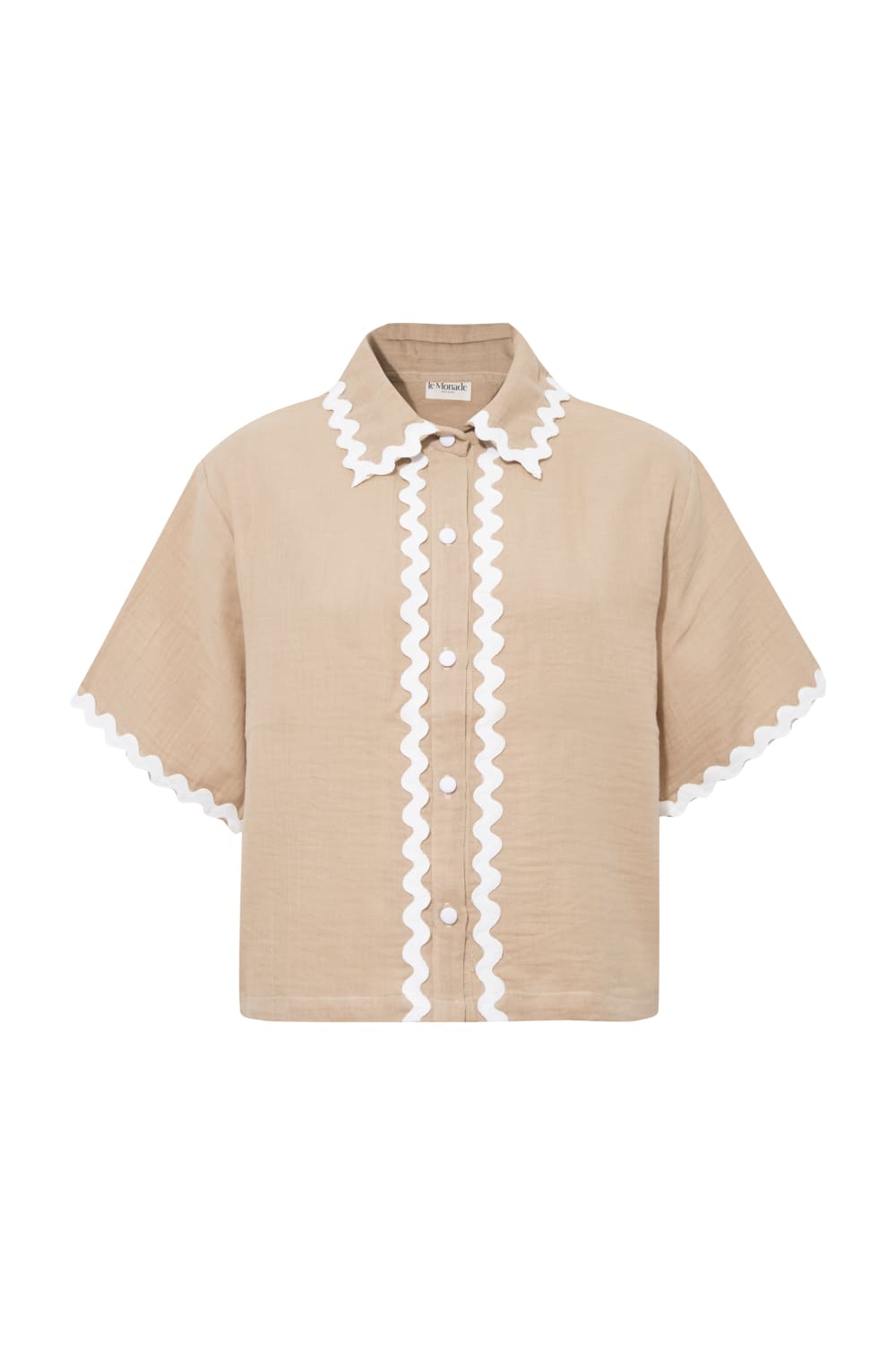 Su Taşı Detaylı Bej Kısa Kol Gömlek
