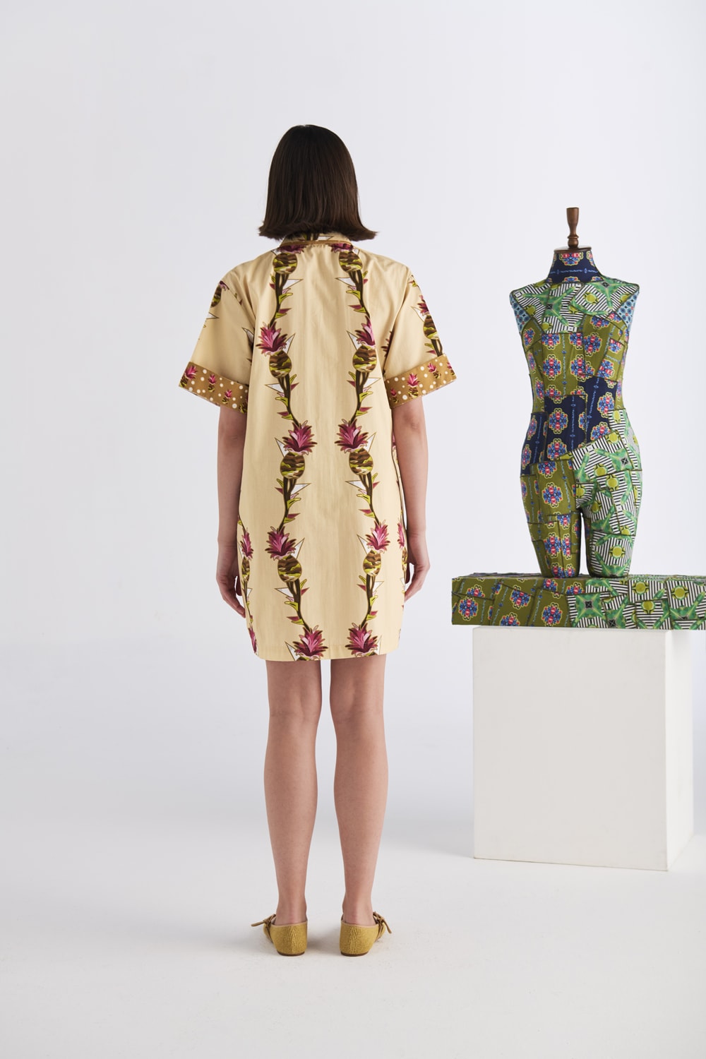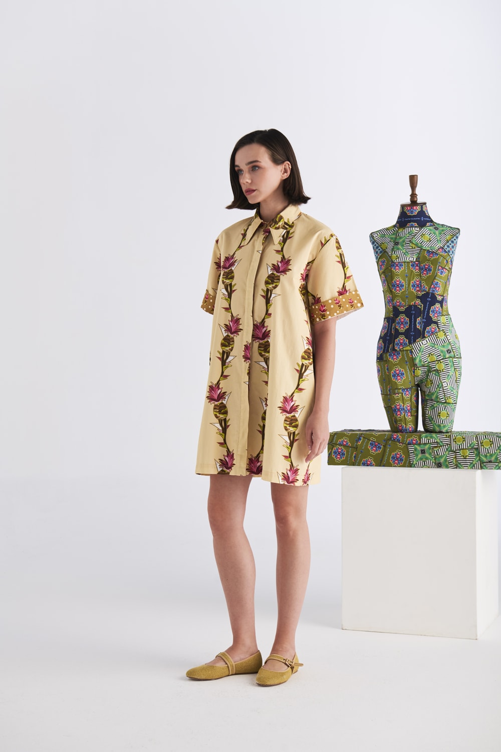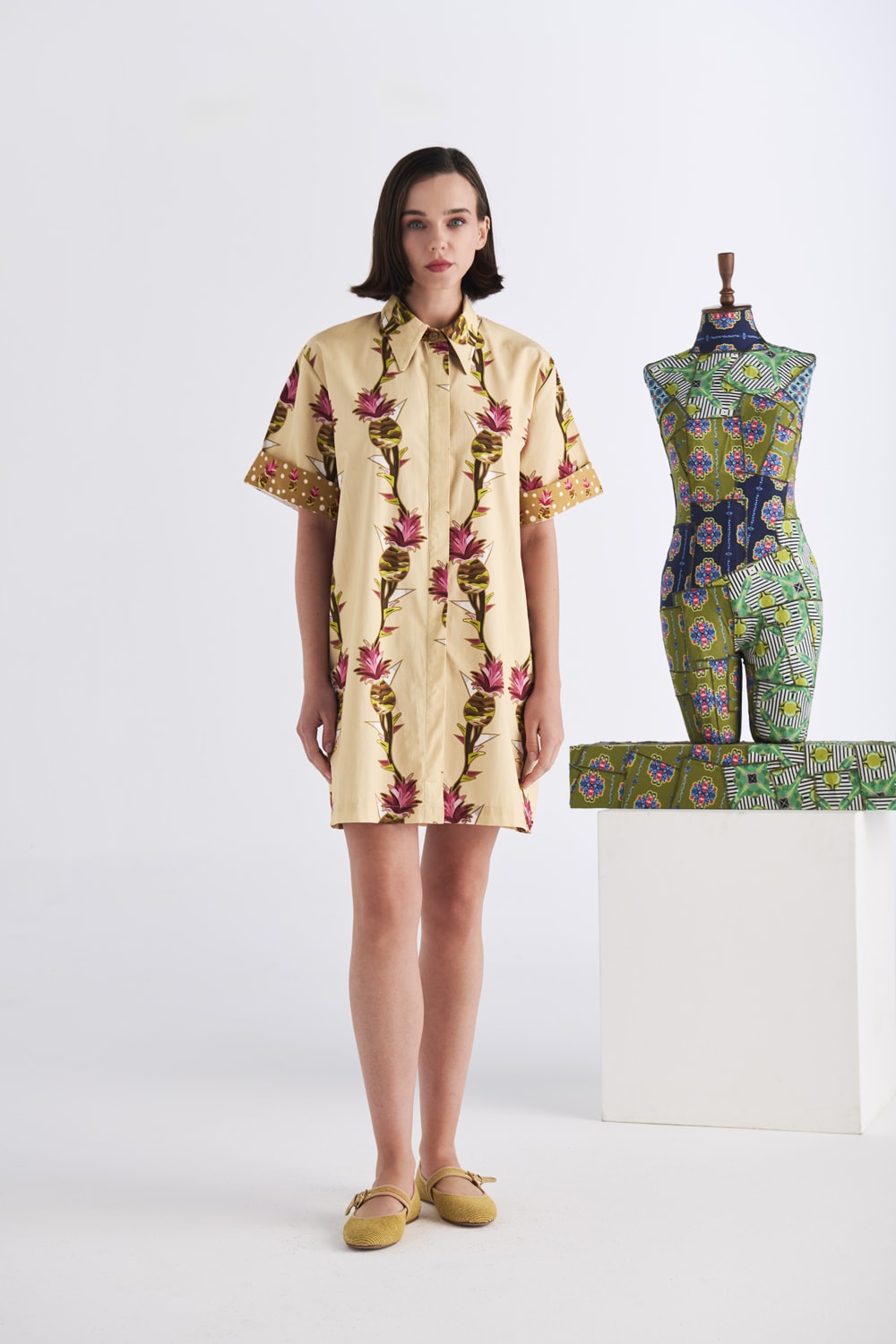 Tokyo Kemer Detaylı Kısa Gömlek ElbiseDesenler, Sanatçı Defne Camcıoğlu’nun eserlerinden oluşturulmuştur,%100 Pamuk,Ürün dayanıklılık ve konfor gözetilerek, ince dokulu ve tok duruşlu poplin kumaş ile özenle tasarlanmıştır,Ananas desenlerinden oluşan eser, poplin kumaş'a dijital baskı yöntemi ile basılmıştır,Ürün kısa kol, kısa boy detaylı gömlek elbise silüetinden oluşmaktadır,Gömlek yaka olan ürün, kemer detayı ile şık bir görünüm sunmaktadır.BAKIM ÖNERİLERİ:30 derecede yıkama yapılabilir,Ağartıcı kullanılamaz,Makinede kurutmayınız.Boy: 90 cmBel: 106 cm