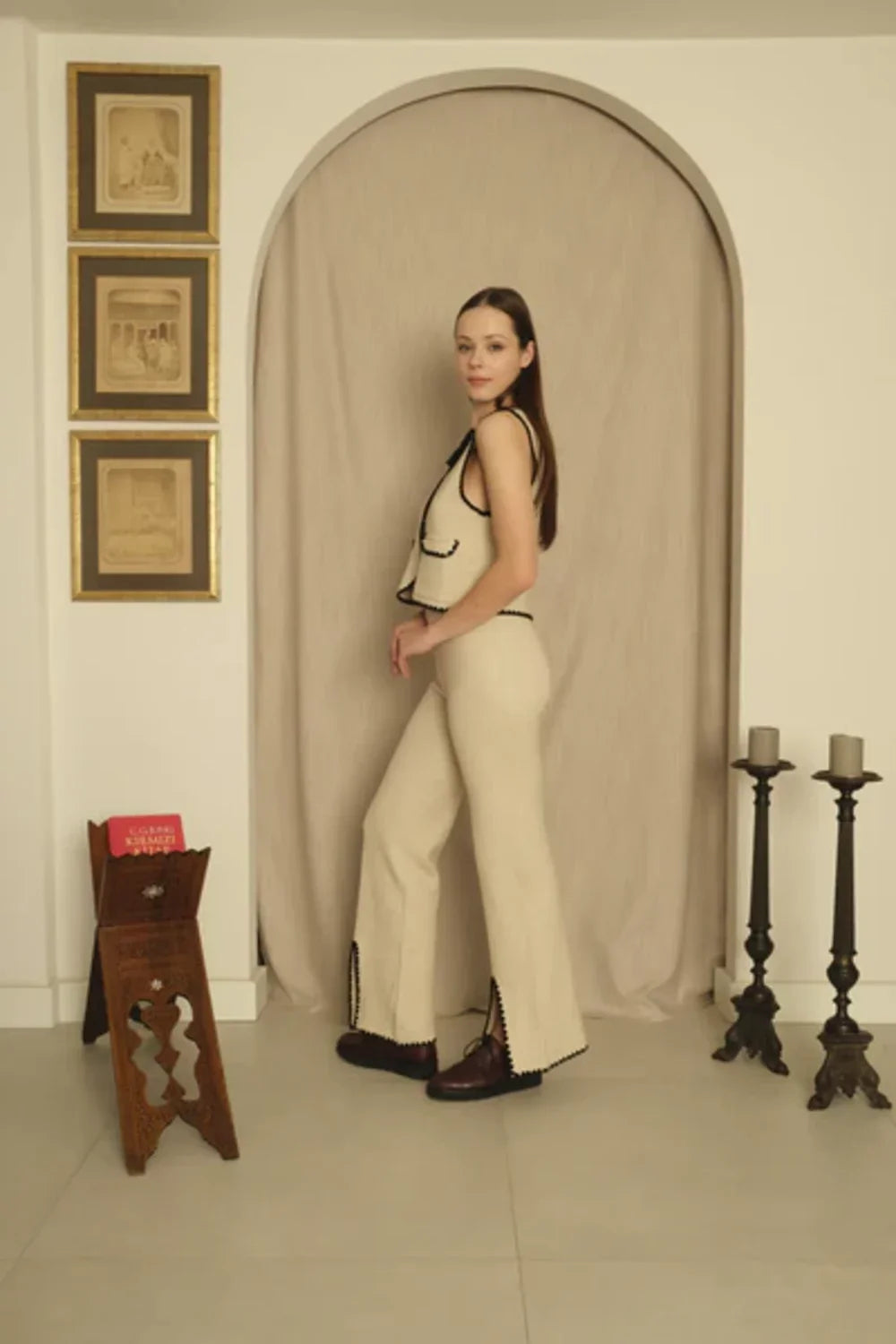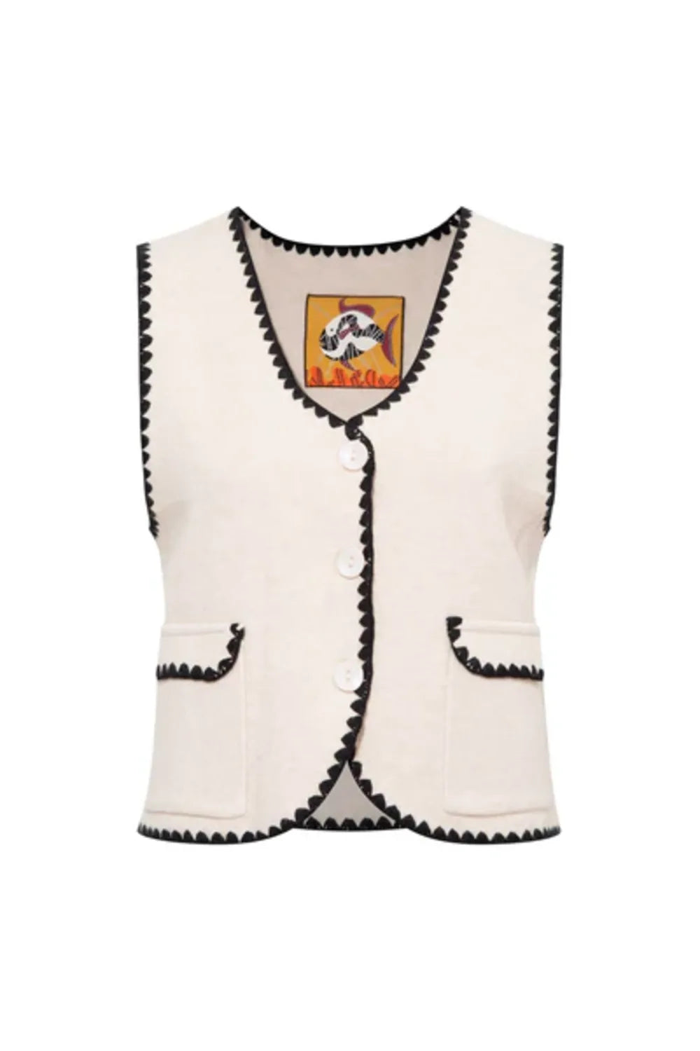 Triko Ekru Siyah Sıçandiş Nakışlı YelekEtiket detaylarında bulunan balık desen, Sanatçı Defne Camcıoğlu’nun eserlerinden oluşturulmuştur,%50 Viskon % 28 Naylon %22 Polyester,Ürün, yumuşak dokulu ve zarif, triko ile üretilmiştir,Bisiklet yaka olan ürün, ense içi etiket ve sıçan diş nakış birleşimi ile şık bir görünüm sunmaktadır.Standart BedenBAKIM ÖNERİLERİ:30 derecede yıkama yapılabilir,Ağartıcı kullanılamaz,Makinede kurutmayınız.