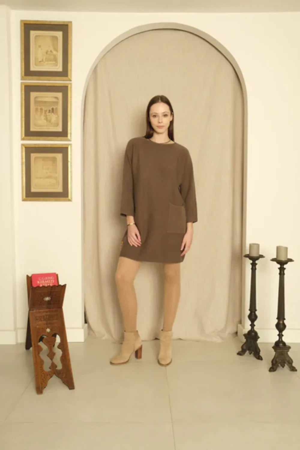 Triko Haki Kısa ElbiseEtiket detaylarında bulunan balık desen, Sanatçı Defne Camcıoğlu’nun eserlerinden oluşturulmuştur,%50 Viskon % 28 Naylon %22 Polyester,Ürün, yumuşak dokulu ve zarif, triko ile üretilmiştir,Yüksek bel ve mini boy olan ürün, etiket ve büyük cep birleşimi ile şık bir görünüm sunmaktadır.Standart BedenBAKIM ÖNERİLERİ:30 derecede yıkama yapılabilir,Ağartıcı kullanılamaz,Makinede kurutmayınız.