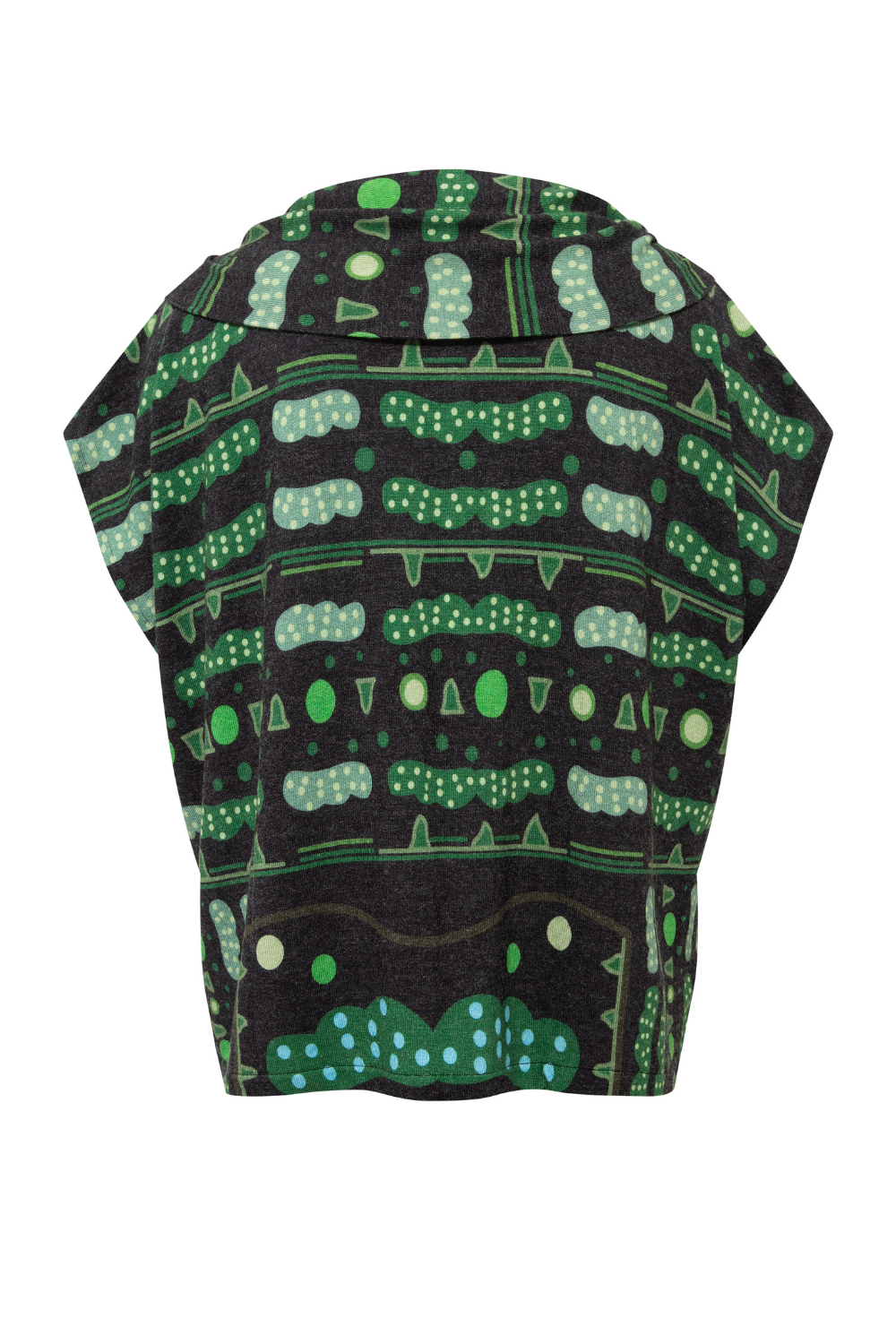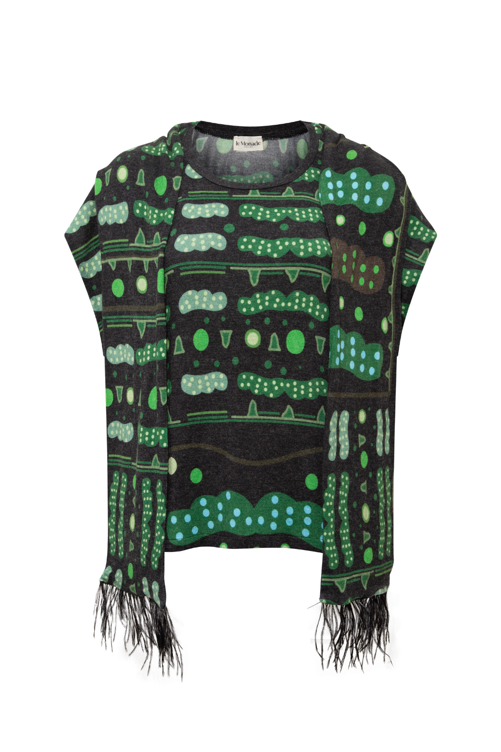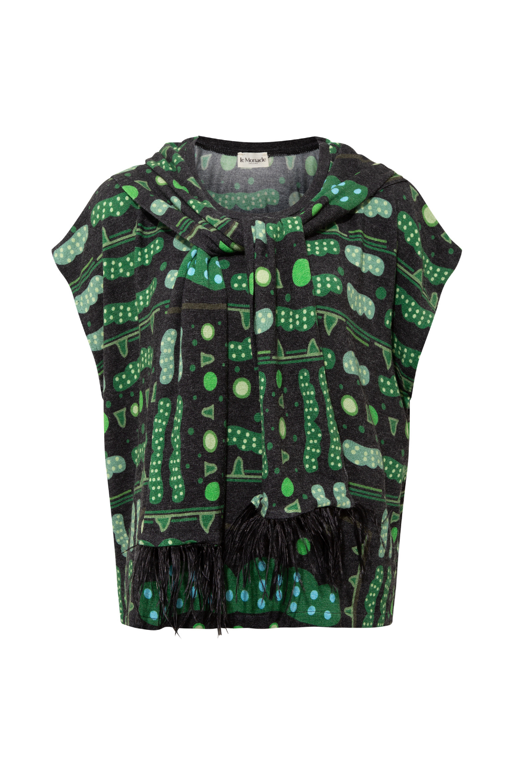 Yeşil Bulut Desenli Fular Detaylı Bluz