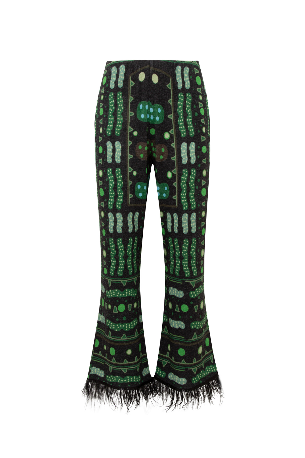 Yeşil Bulut Desenli Tüy Detaylı Pantolon