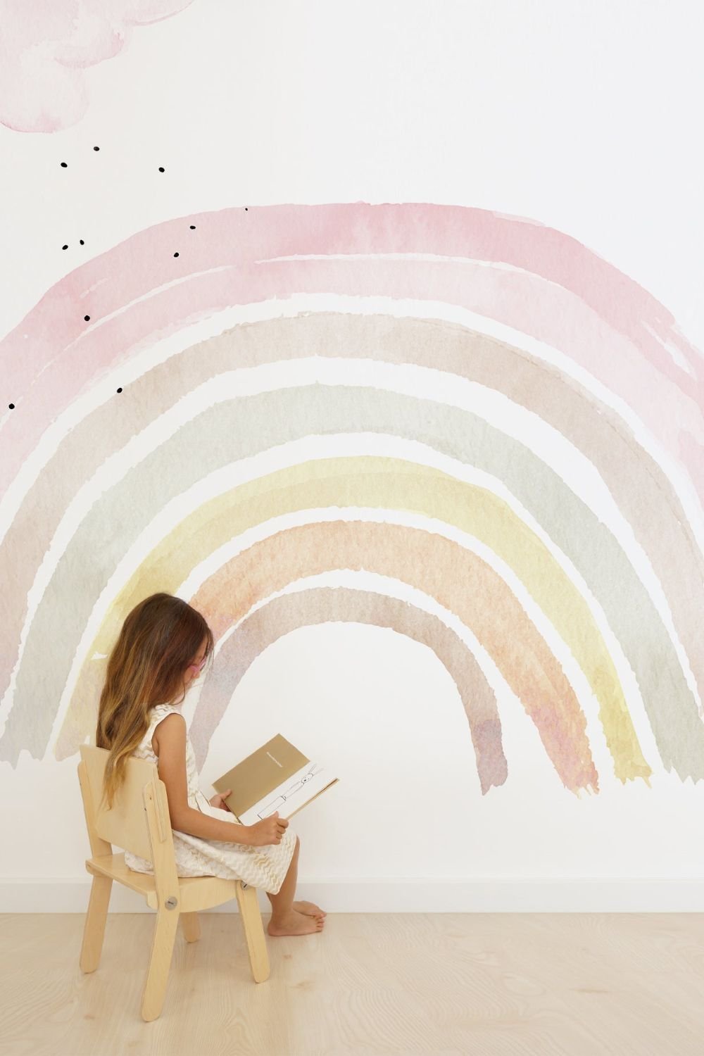 Suluboya Pembe Gökkuşağı Duvar Panosu Gae990