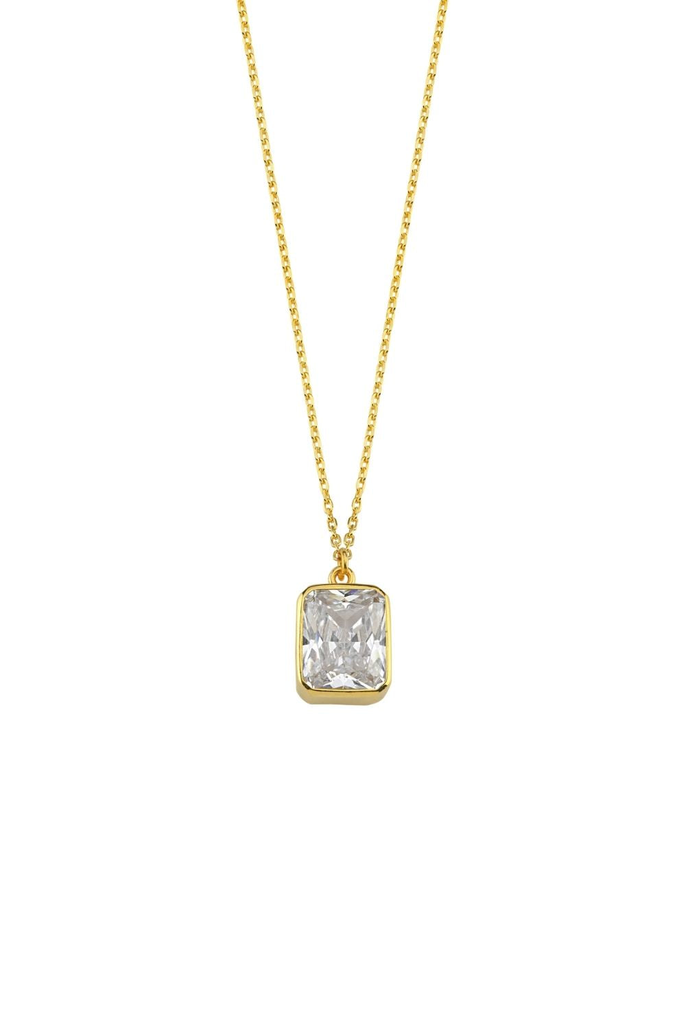 Dikdörtgen Kristal Taşlı Zincir Kolye