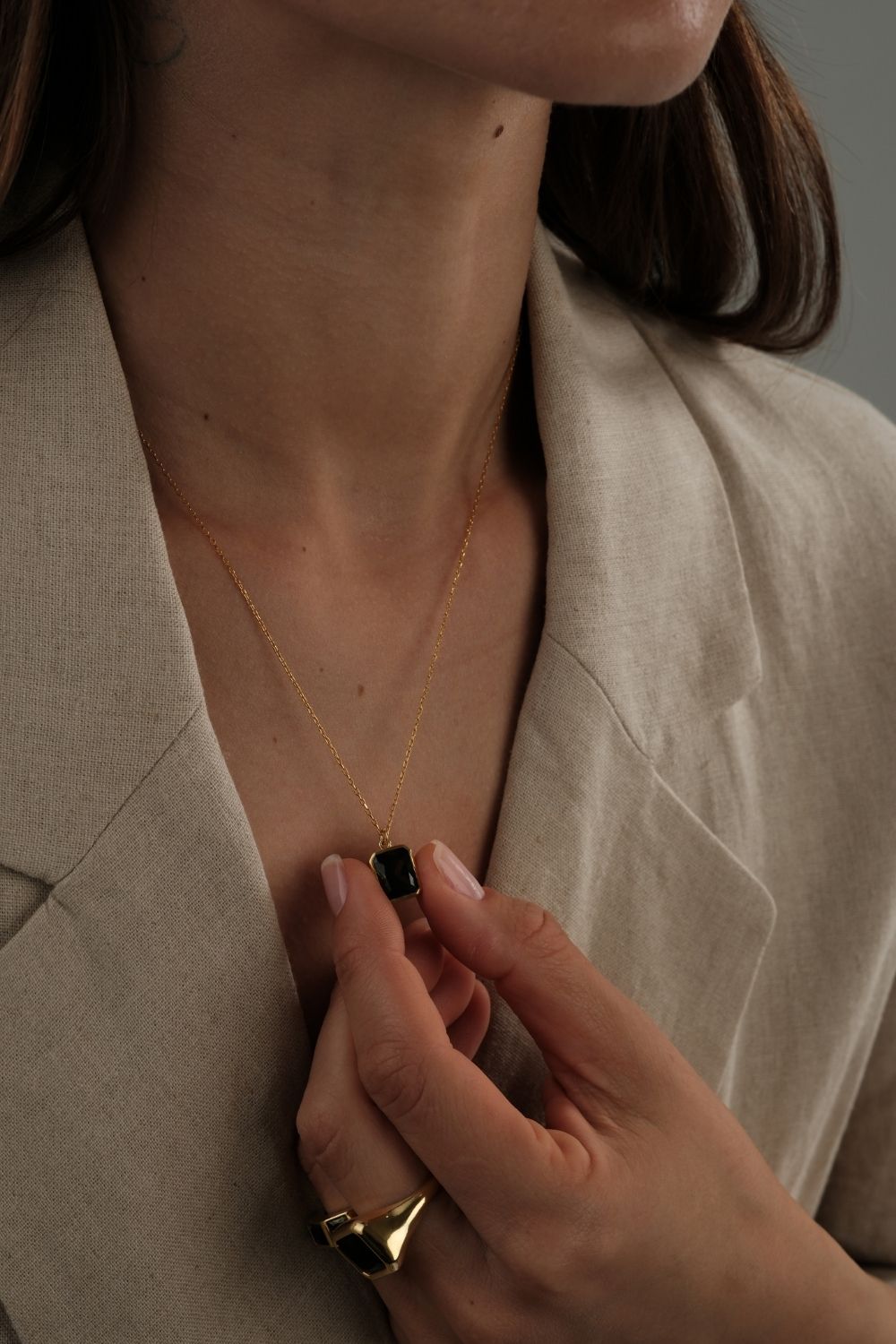 Dikdörtgen Kristal Taşlı Zincir Kolye