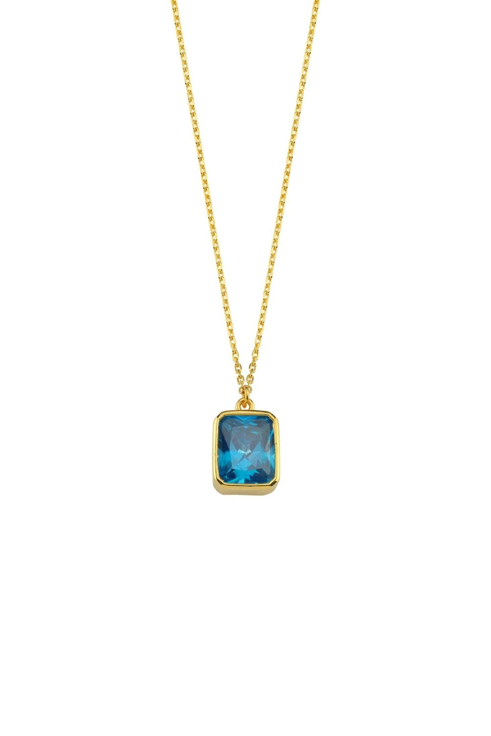 Dikdörtgen Mavi Kristal Taşlı Zincir Kolye