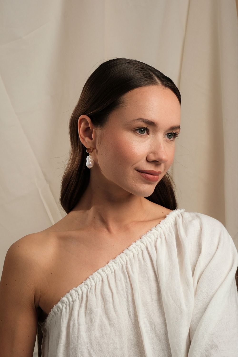 Kristal Taşlı Barok İnci Sallantılı Küpe