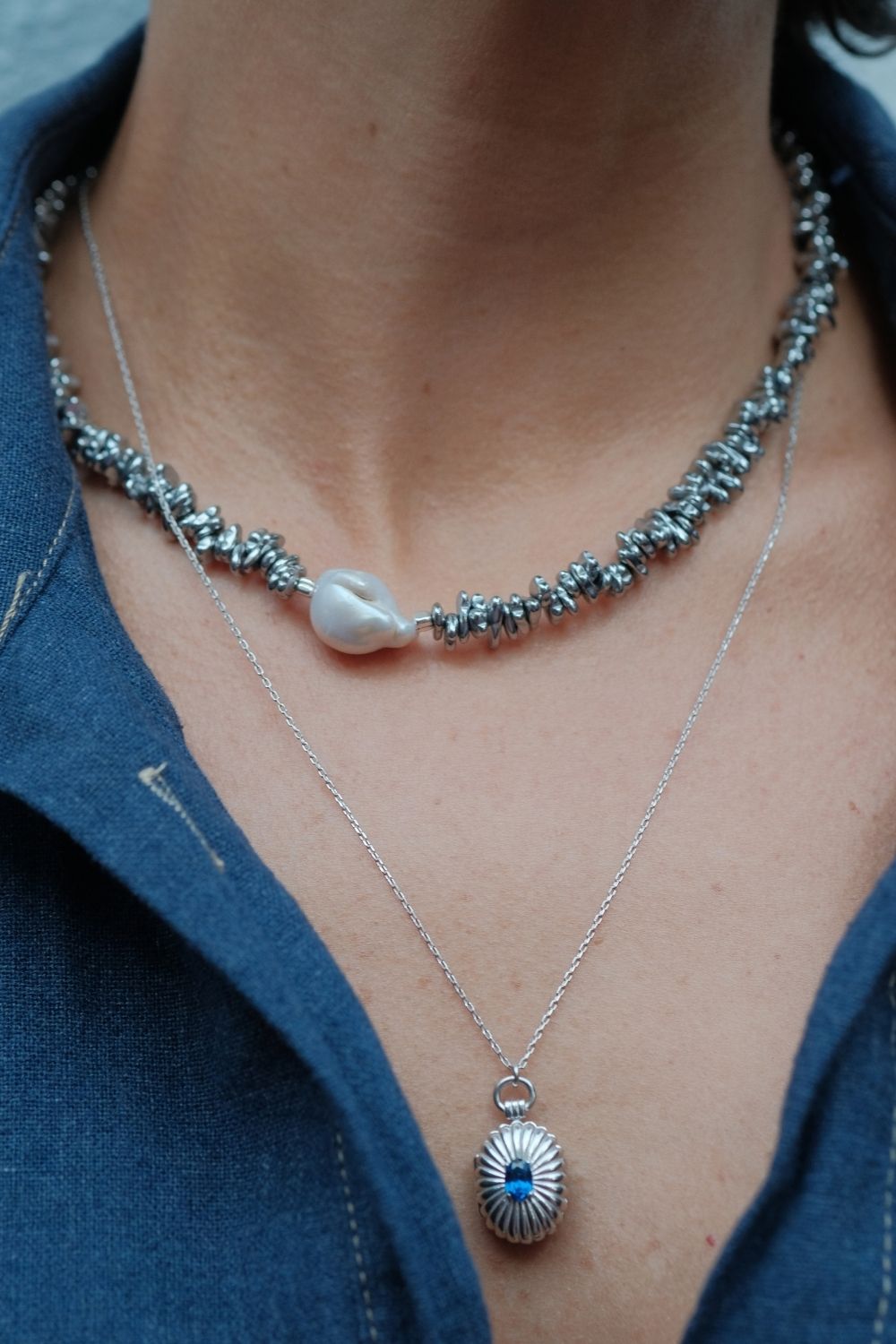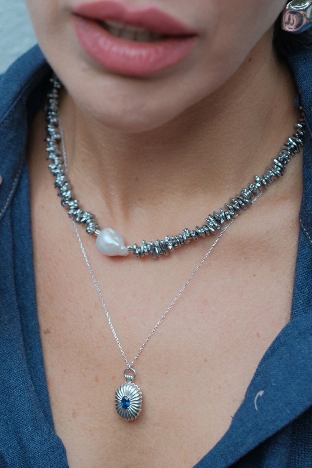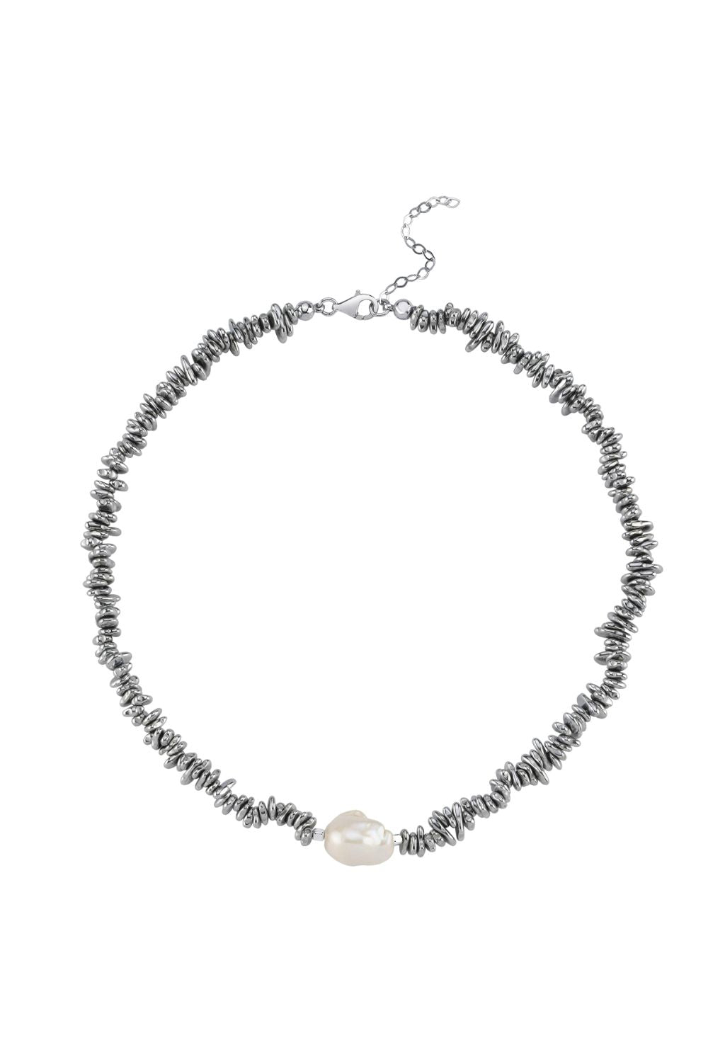 Halia Gri Hematit Taşlı Barok İnci Kolye