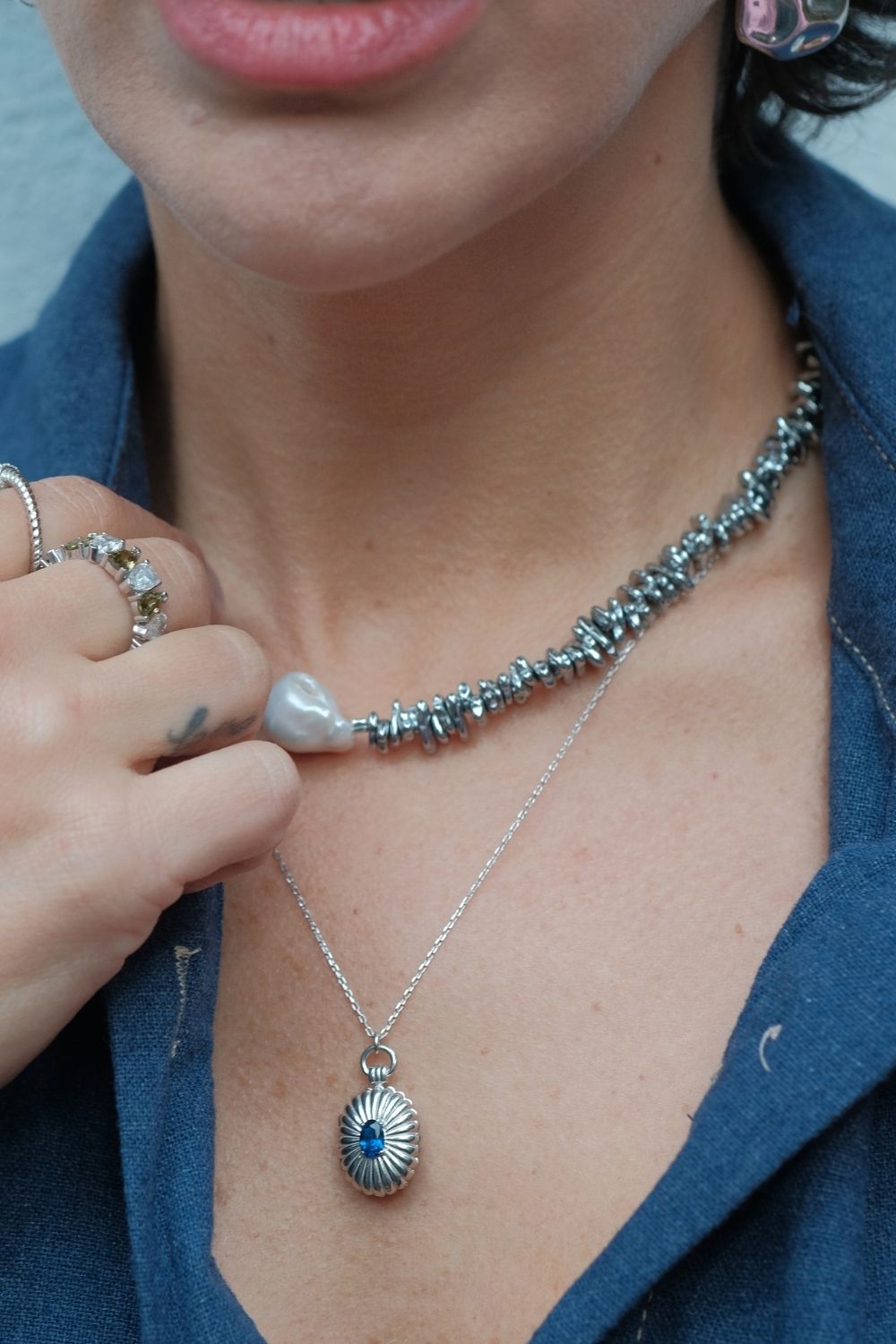 Halia Hematit Taşlı Barok İnci Kolye, 925 ayar gümüş üzerine 22 ayar altın kaplama ile tasarlanmış, doğal barok inci ve hematit taşının uyumunu yansıtan zarif bir takıdır. Her biri birbirinden farklı formda olan barok inciler, kolyeye özgün ve organik bir görünüm kazandırırken, hematit taşı ile şıklığı tamamlar. Doğal taşlı inci kolye arayanlar için sofistike ve dikkat çekici bir alternatiftir.