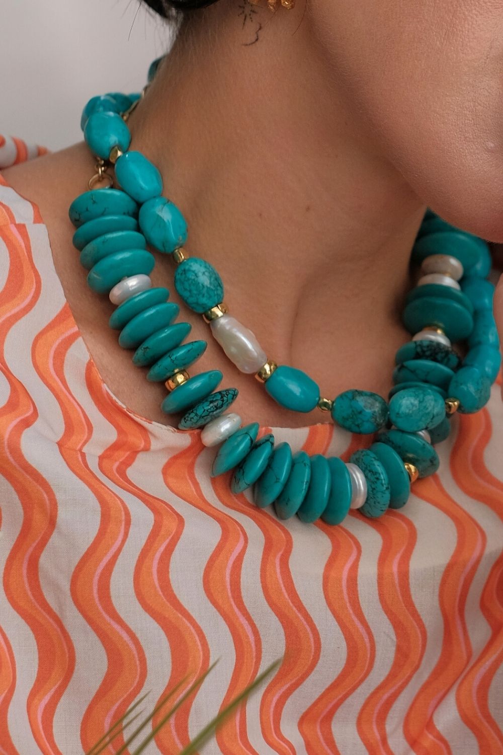 Doğal Turkuaz ve inci kullanılmıştır.