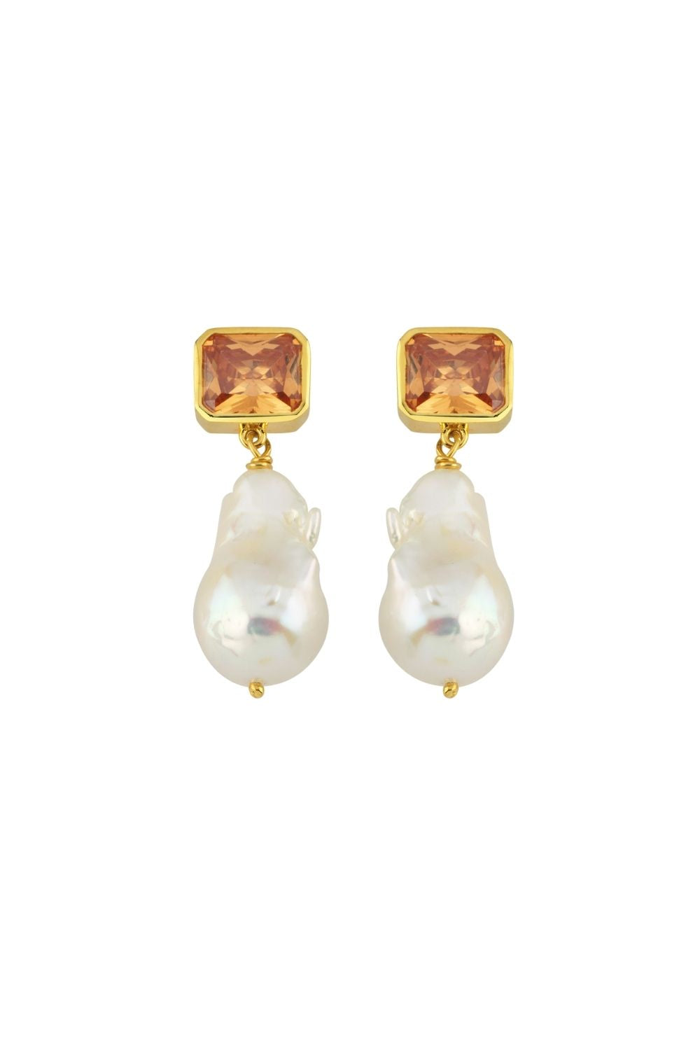 Şampanya Kristal Taşlı Barok İnci Sallantılı Küpe