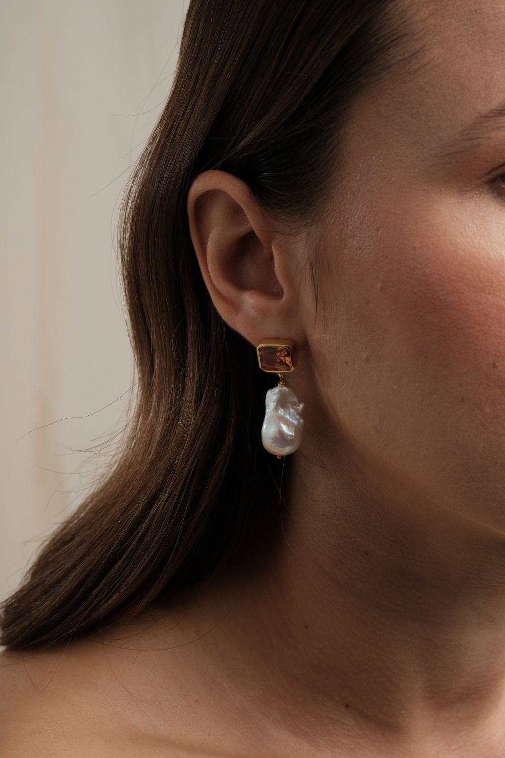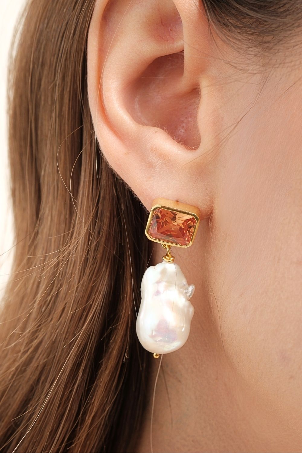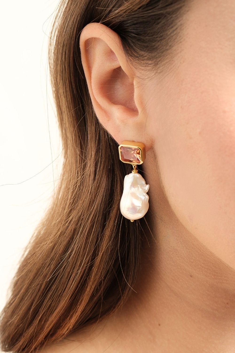 Kristal Taşlı Barok İnci Sallantılı Küpe