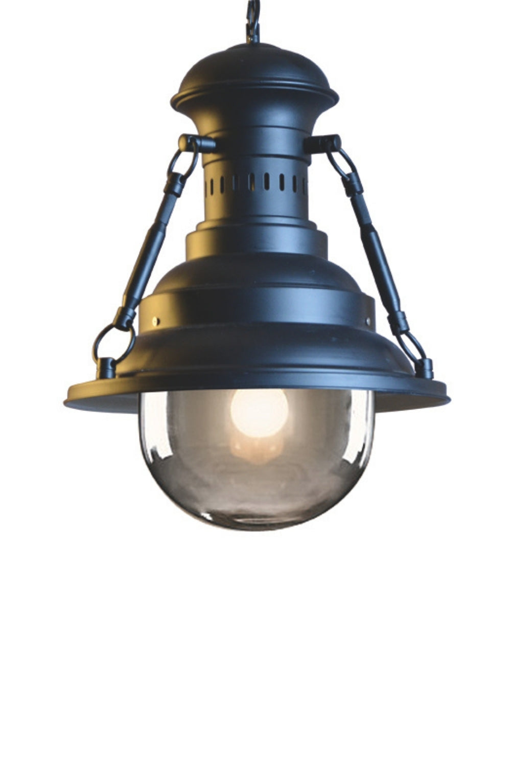 Endüstriyel Deniz Feneri Avize | Mat Siyah Metal Ve Cam Gövdeli Sarkıt