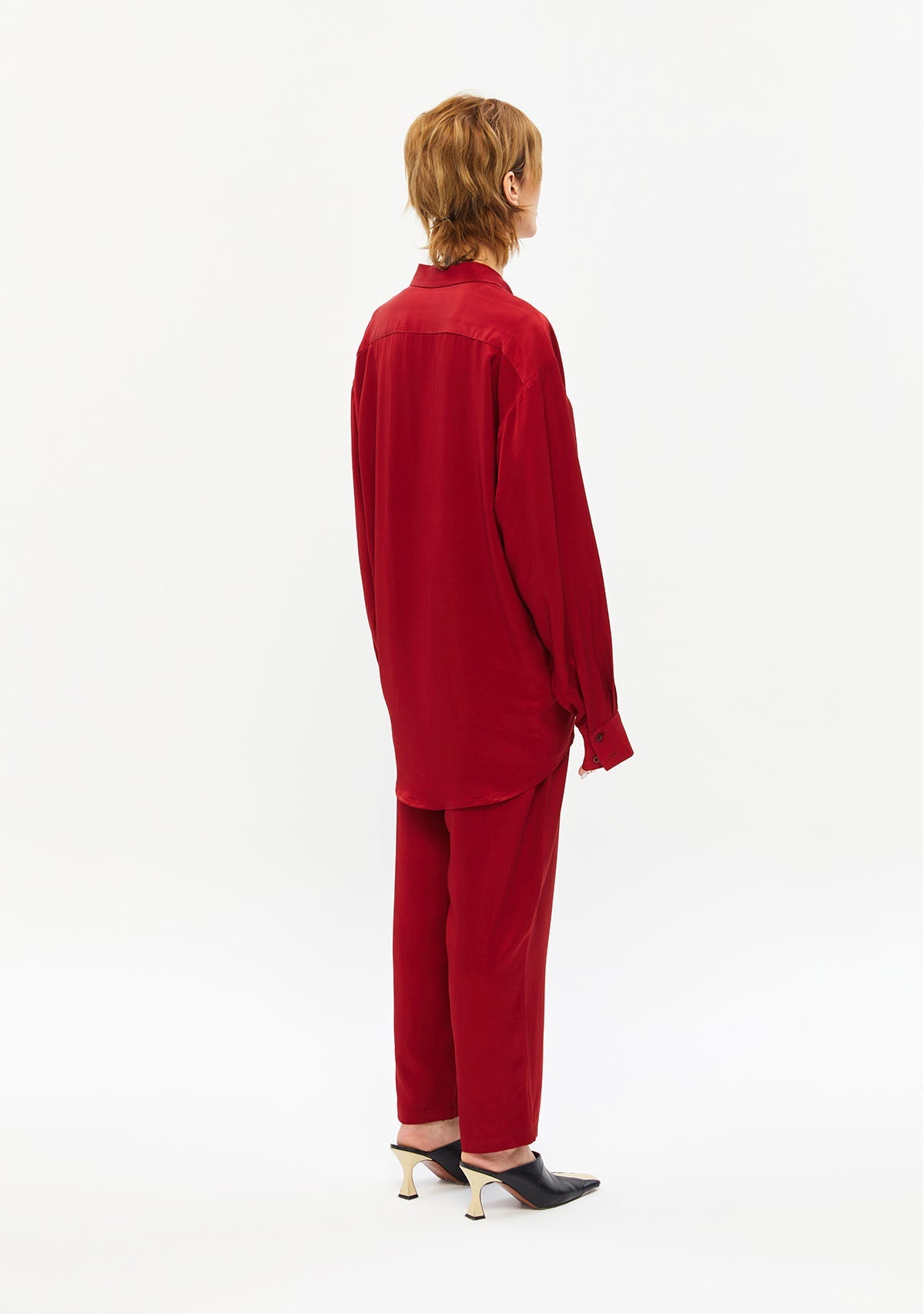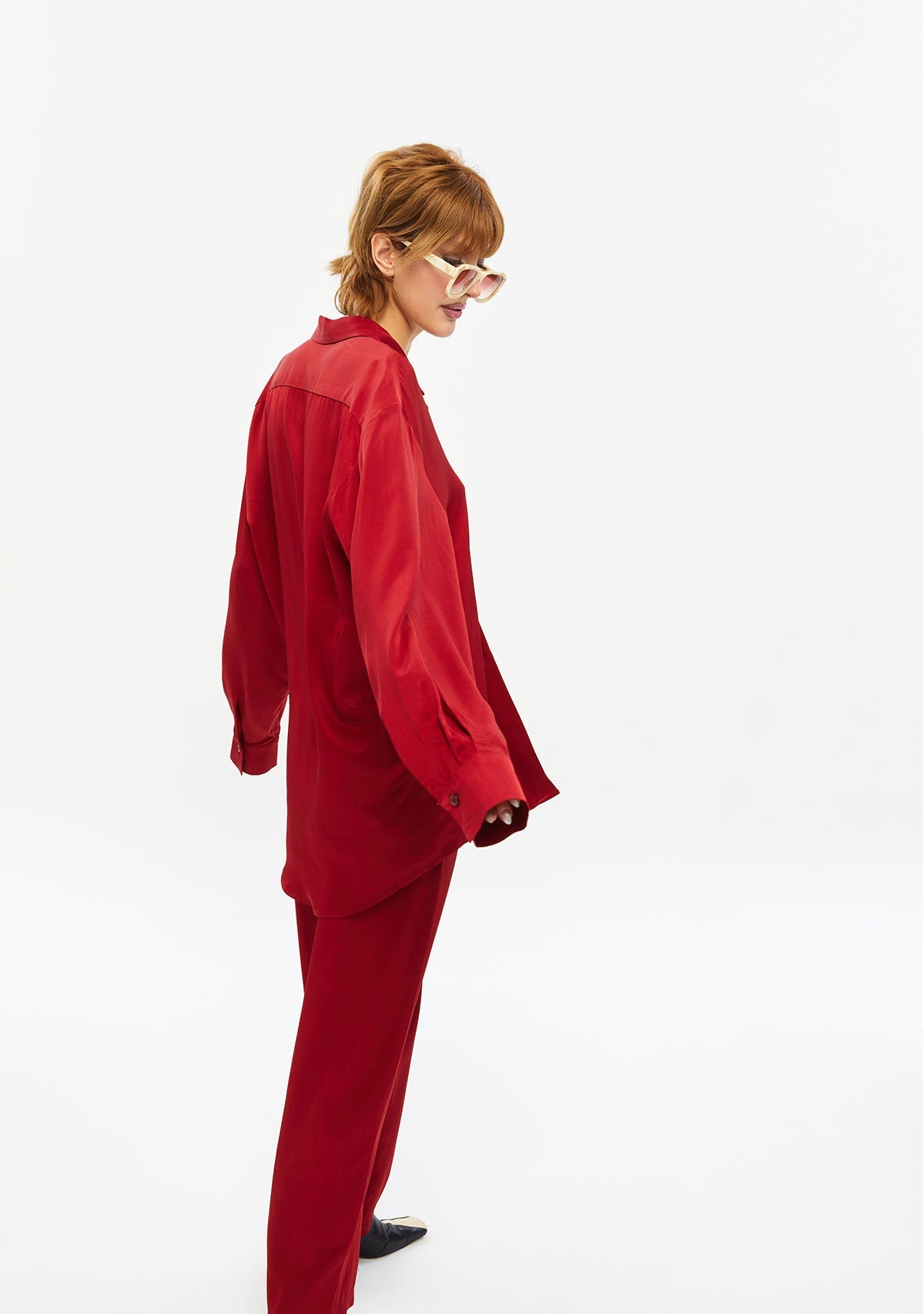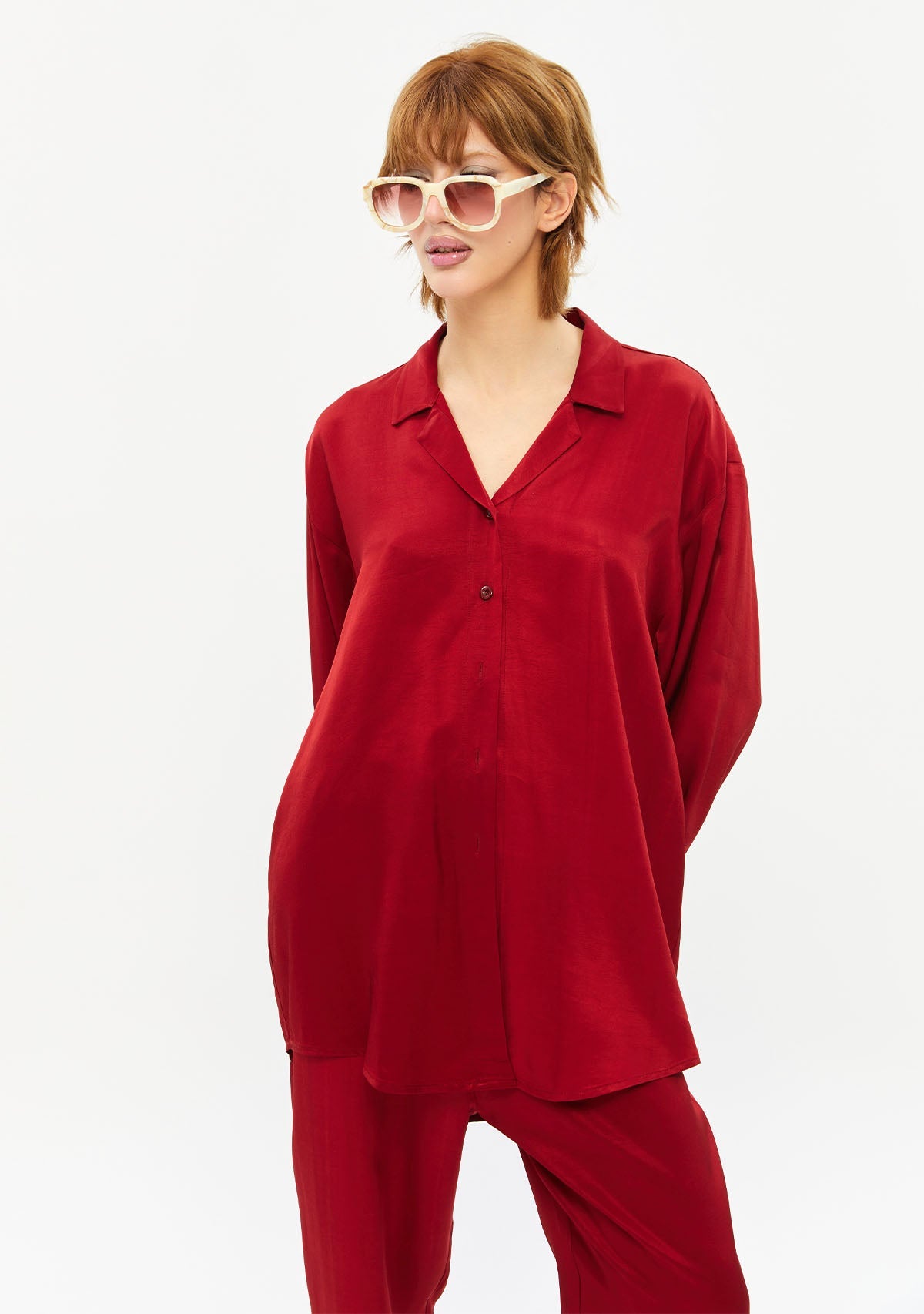 - Tabii, sonrasında da… Hem gündüz hem gece rahatlıkla tercih edebileceğiniz Kırmızı Gömlek oversize kesimiyle ve rahat kumaşıyla sofistike bir stil elde etmenizi sağlıyor.