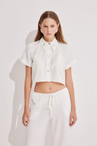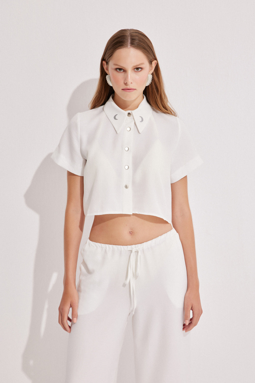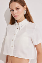 Gömlek Detayları: Düğmeler nikel metalik, crop, kısa kol gömlek yaka
