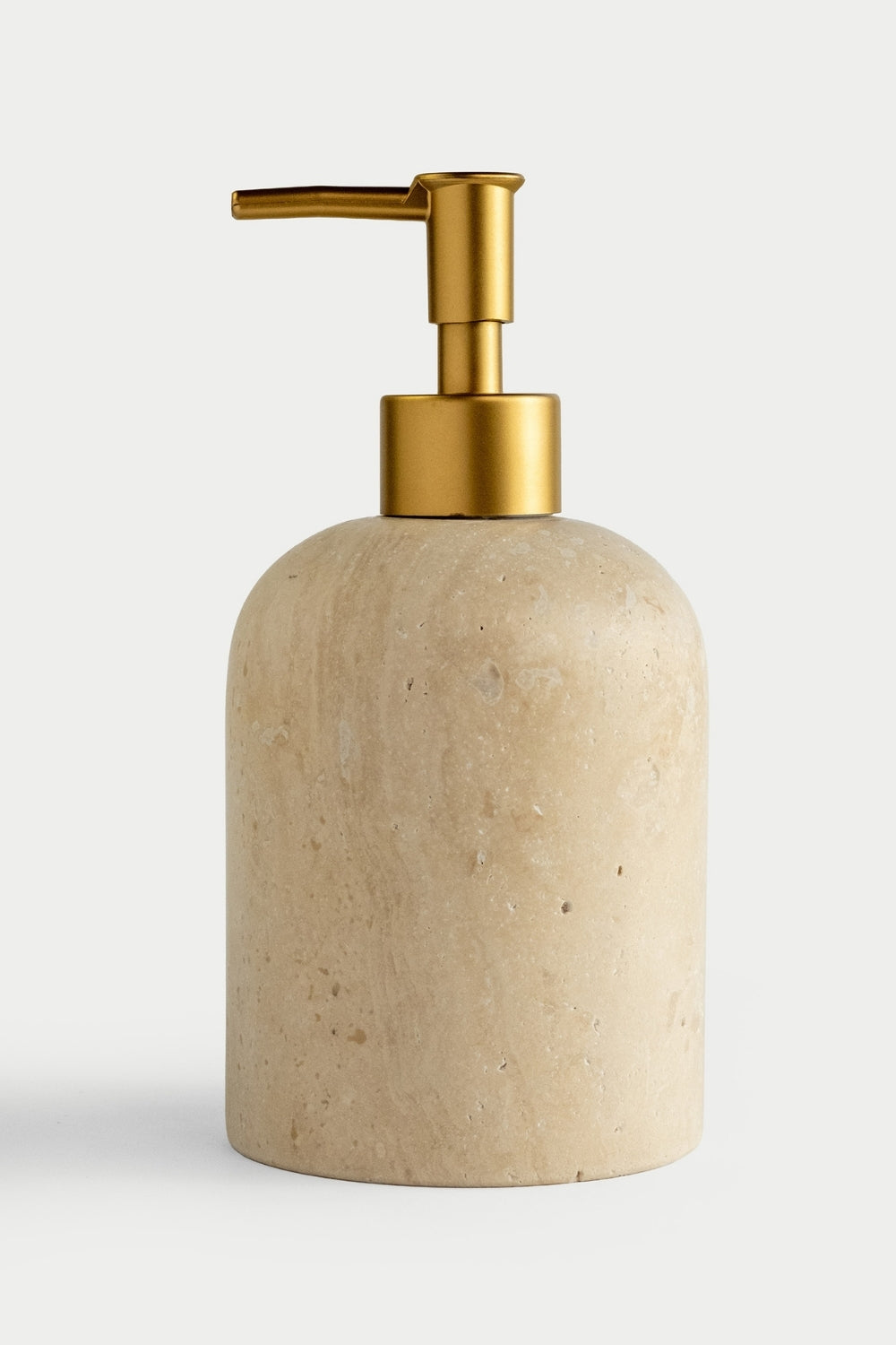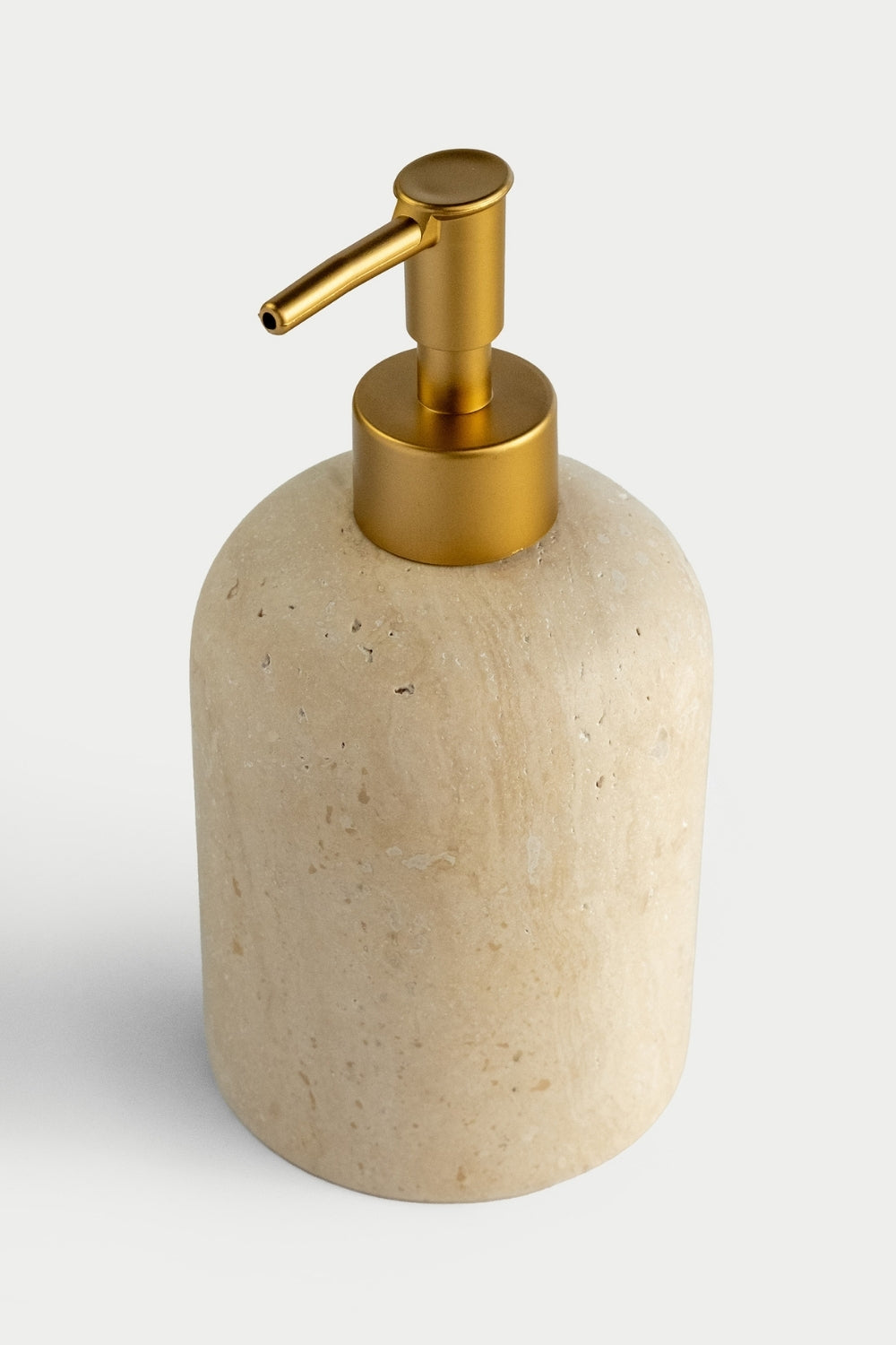 Tarz ve İlham:Travertenin doğal, açık bej tonu yüzeyindeki minimal gözenekler, banyo ambiyansına sıcaklık ve organik bir doku katıyor. Silindirik, yumuşak hatlı şişe formu, doğal taşın ağırlığı ve hissi ile birleşerek ürüne kalıcı ve zamansız bir his verir.