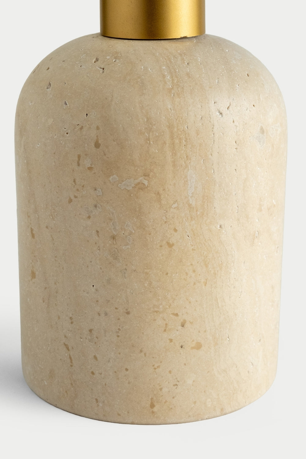 Ürün Özellikleri:Malzeme: Doğal traverten malzeme, İthal yalıtımlı iç aksamBoyutlar: Çap: 9 cm, Yükseklik: 18,5 cm, Pompa Hariç Yükseklik: 12 cmDoğal malzeme: Özel işlenmiş, her biri benzersiz el işçiliği